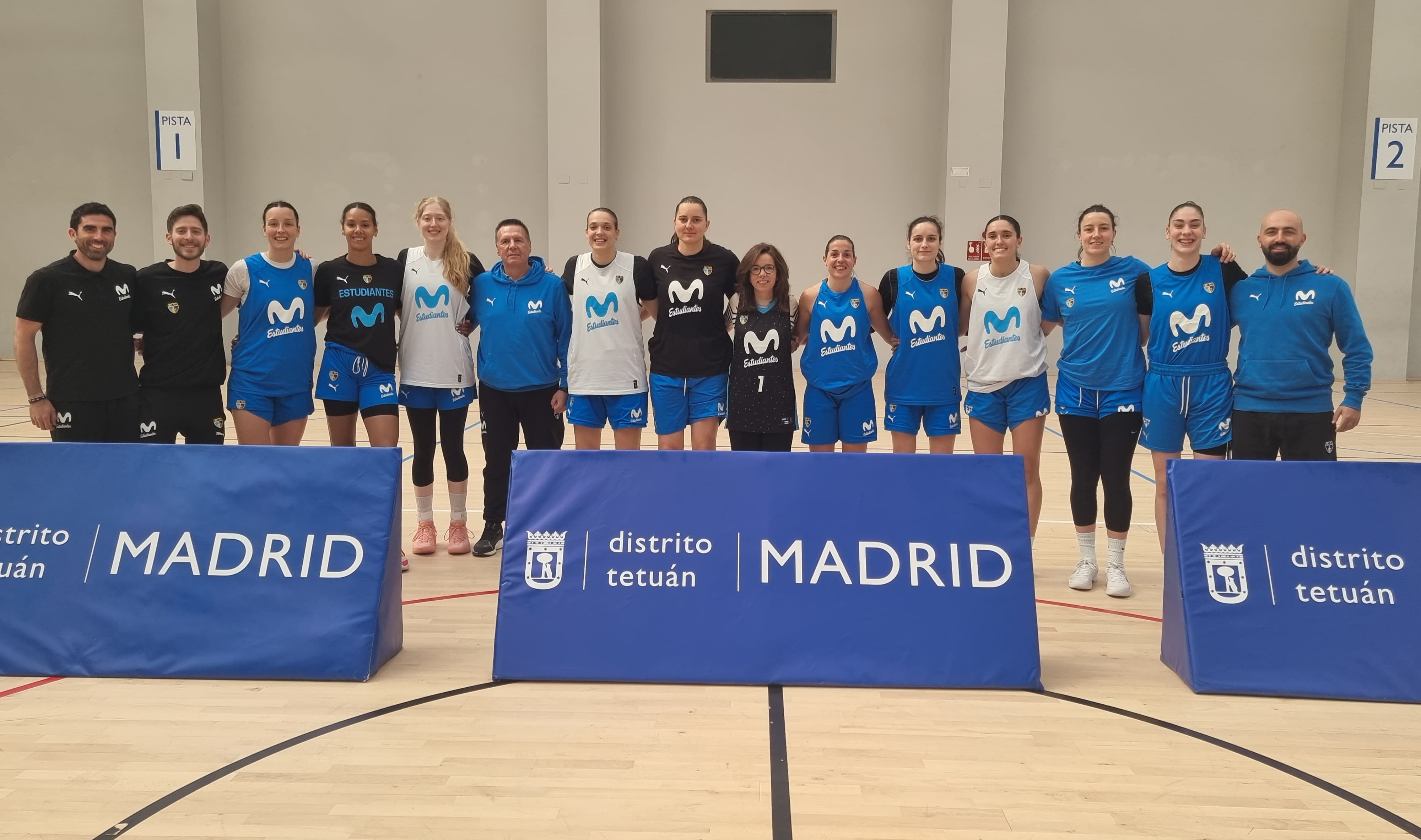 El primer equipo femenino del club Movistar Estudiantes entrena su final de temporada en el Centro Deportivo Municipal Triángulo de Oro de Tetuán, gracias a la cesión de estas instalaciones por parte de la junta municipal del distrito para la preparación del equipo. Esta mañana, la concejala del distrito, Paula Gómez-Angulo, ha asistido a uno de los primeros entrenamientos que ha realizado el club en el centro y ha animado a las jugadoras del equipo madrileño de cara a los próximos partidos.