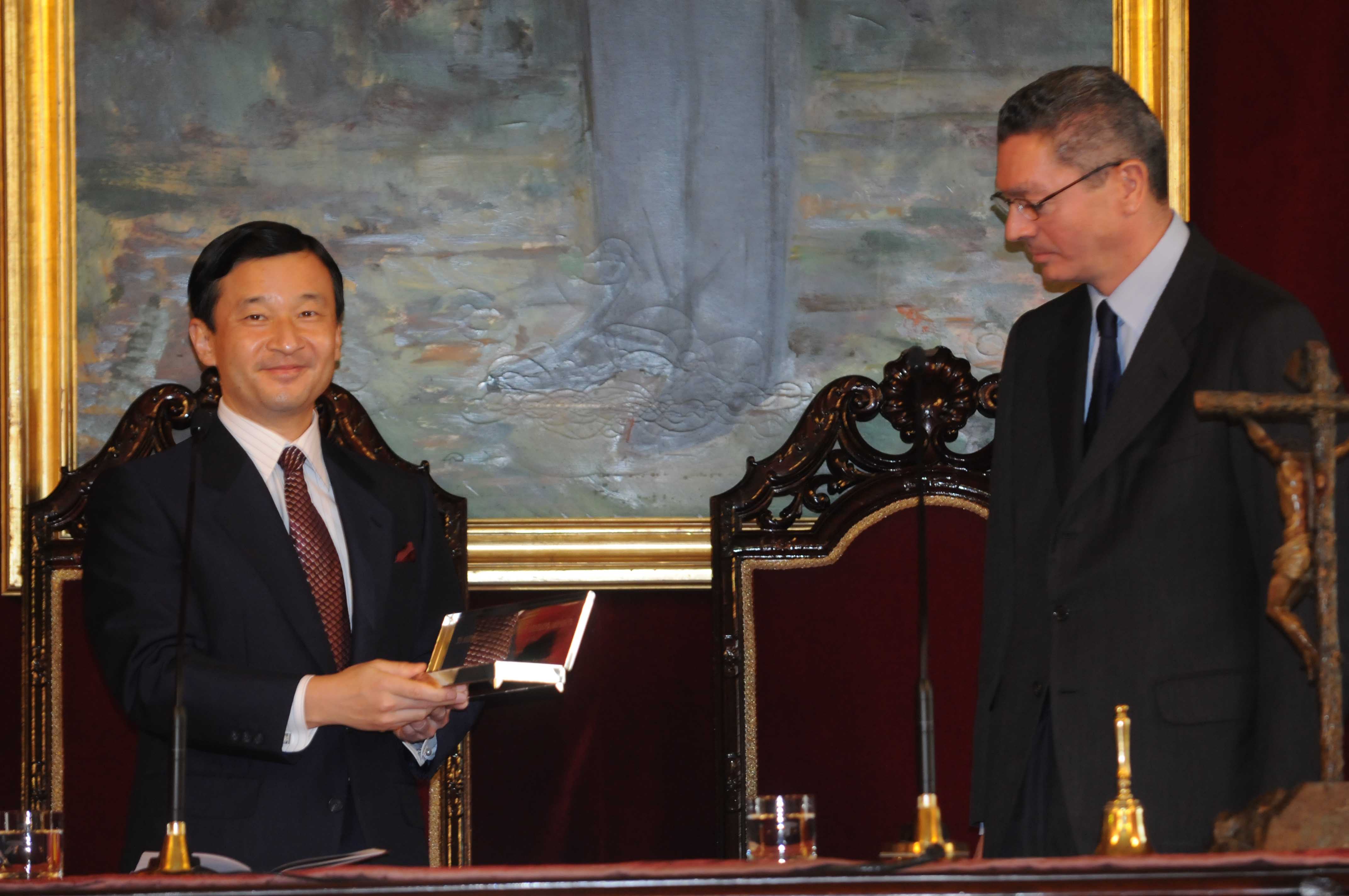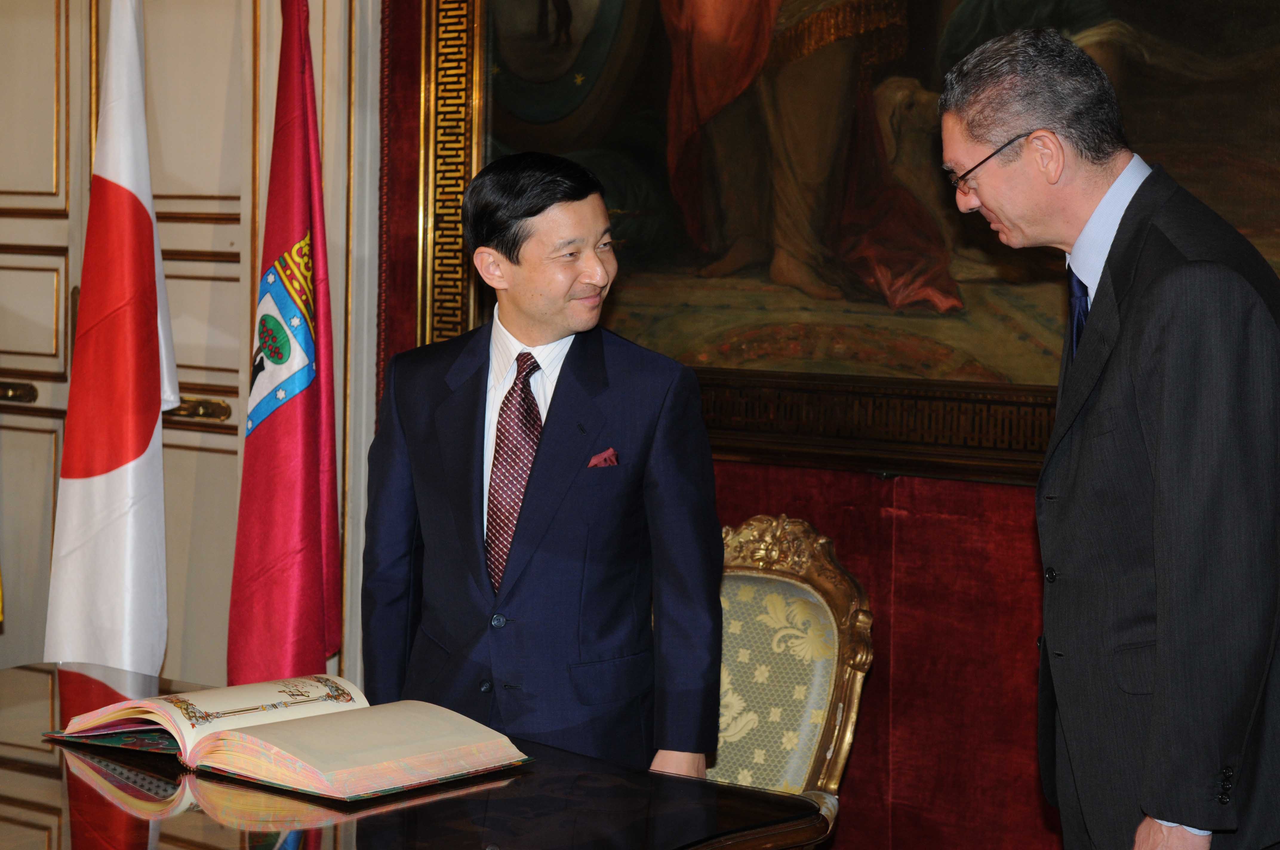 Tras evocar a Naruhito las dos visitas que sus padres, los emperadores de Japón, realizaron a Madrid, Gallardón hizo hincapié en el interés que en su país suscita España, la Universidad de Salamanca, la lectura del Quijote o las obras de El Greco y Goya. También hizo mención de la presencia de la personalidad de artistas nipones en Madrid, como es el caso del arquitecto Minoru Yamasaki diseñador de la Torre Picasso o de los escultores Bukichi Inoue y Toshimitsu Imai autores de sendas obras en el Parque Juan Carlos I.