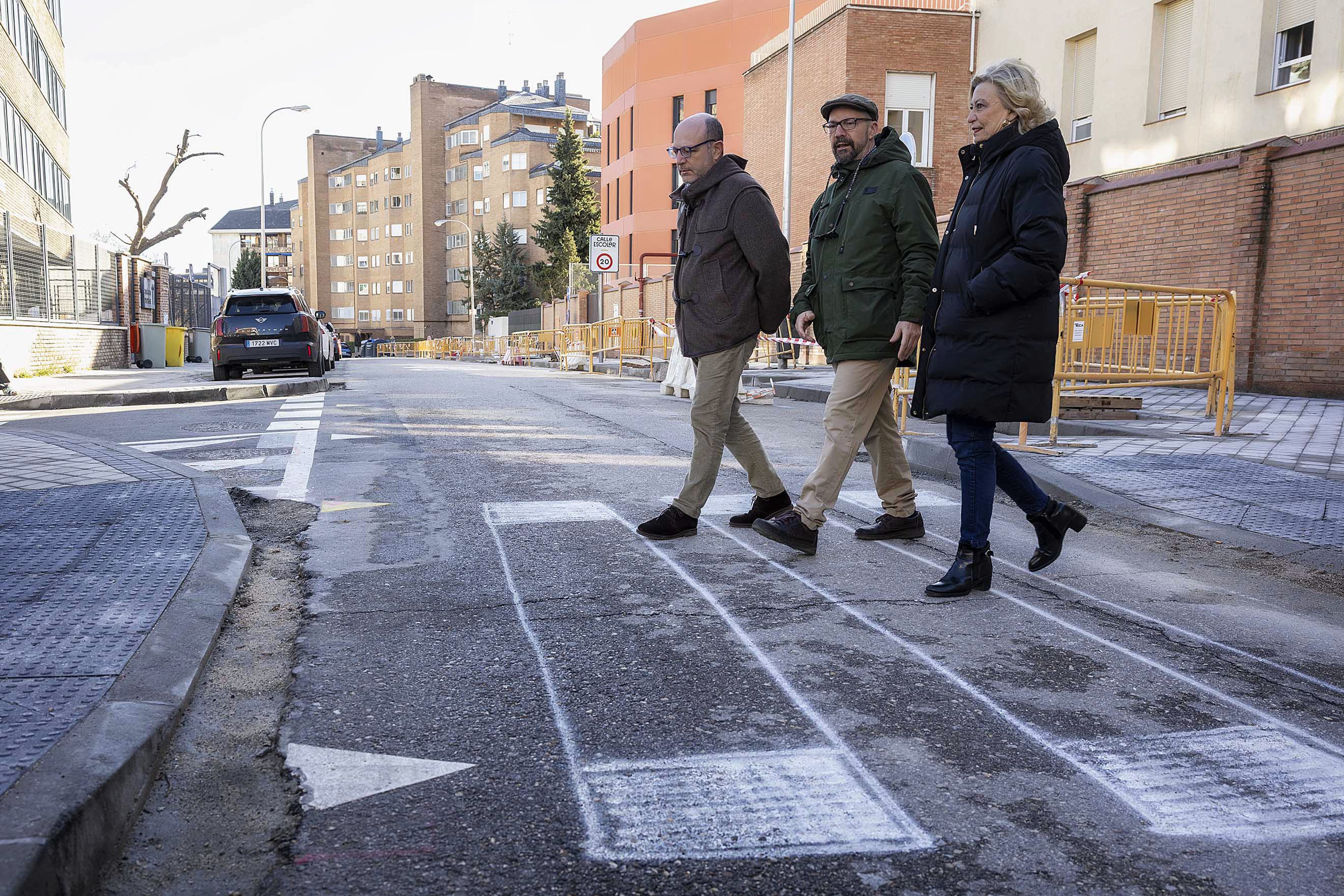 El proyecto, que supone una inversión de 251.000 euros y finalizará a comienzos de primavera, incluye ampliación de aceras y creación de una plataforma única elevada con pasos de peatones frente a la entrada del colegio. Asimismo, se contempla la adaptación de los pasos de peatones existentes, la recolocación de los báculos del alumbrado, la instalación de ocho nuevos bancos y la canalización para el fututo desmontaje del poste de tendidos aéreos de teléfono que afecta al entorno de la entrada al colegio.