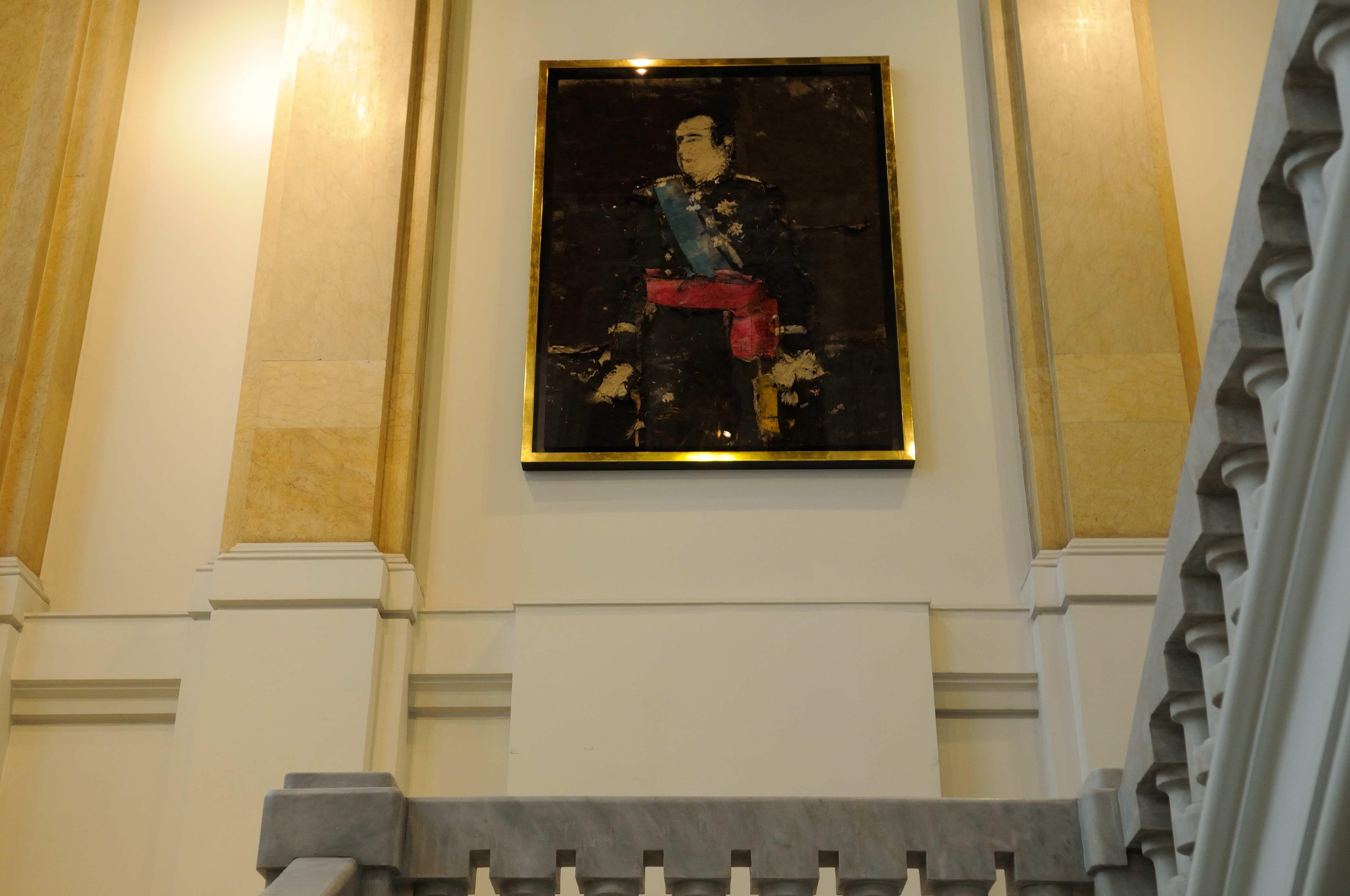 La foto de Felipe VI preside el Salón de Plenos del Palacio de Cibeles, mientras que el retrato del anterior monarca, Juan Carlos I, se ha trasladado a la planta tercera del edifico.