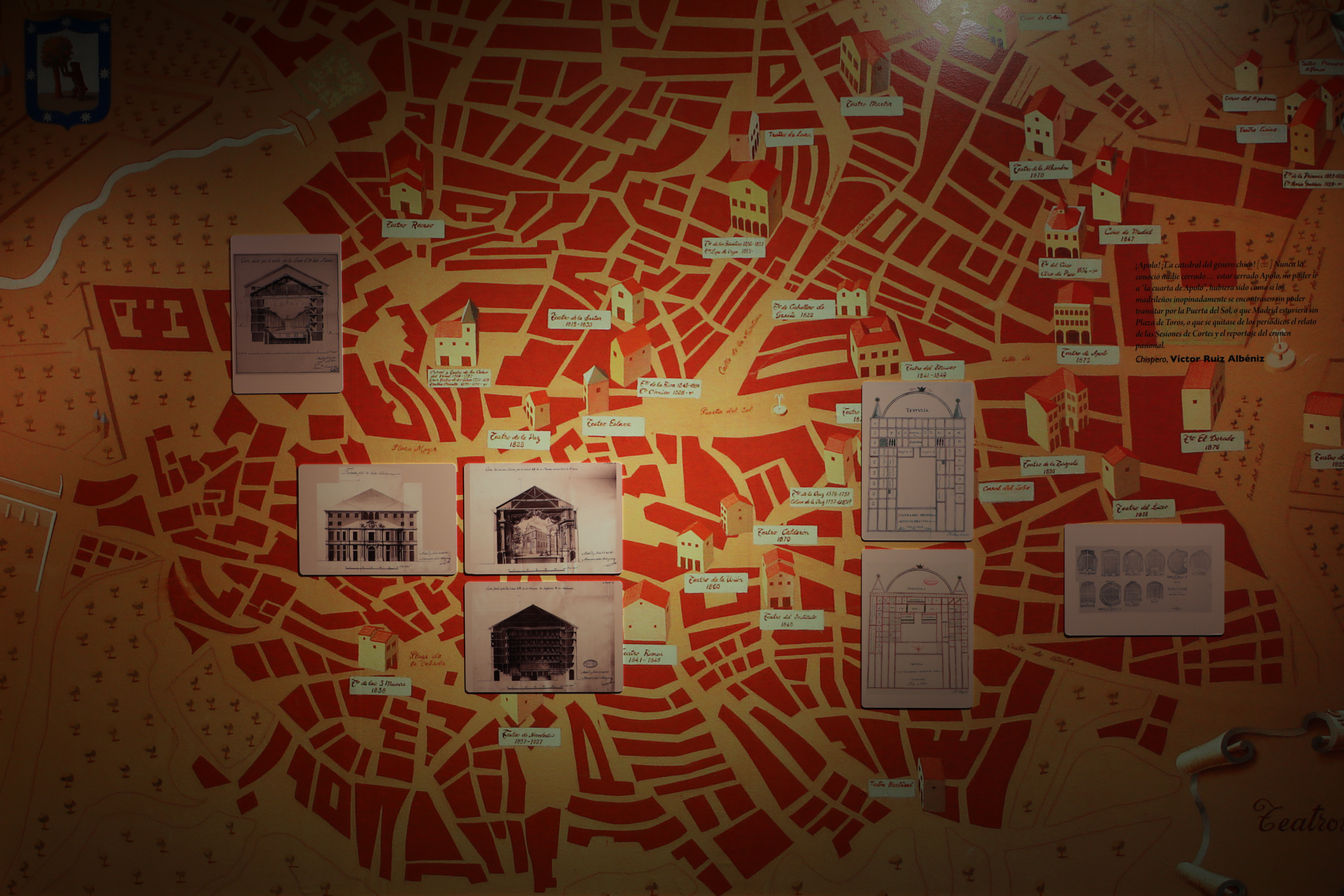 La exposición narra la historia de este género musical escénico a través de más de 500 obras que se distribuirán a lo largo de 14 áreas en la Sala de Exposiciones del teatro. Comisariada por Emilio Casares, con Enrique Bonet como museógrafo y coproducida por el teatro Fernán Gómez. Centro Cultural de la Villa y el Museo Nacional del Teatro (INAEM), en ella tienen cabida los protagonistas del género (músicos, escritores y artistas), pero también los oficios de los artesanos, partituras de los grandes títulos, escenografías, trajes, cartelería, grabados, caricaturas, retratos, planos de teatros, maquetas y compañías, entre otros.