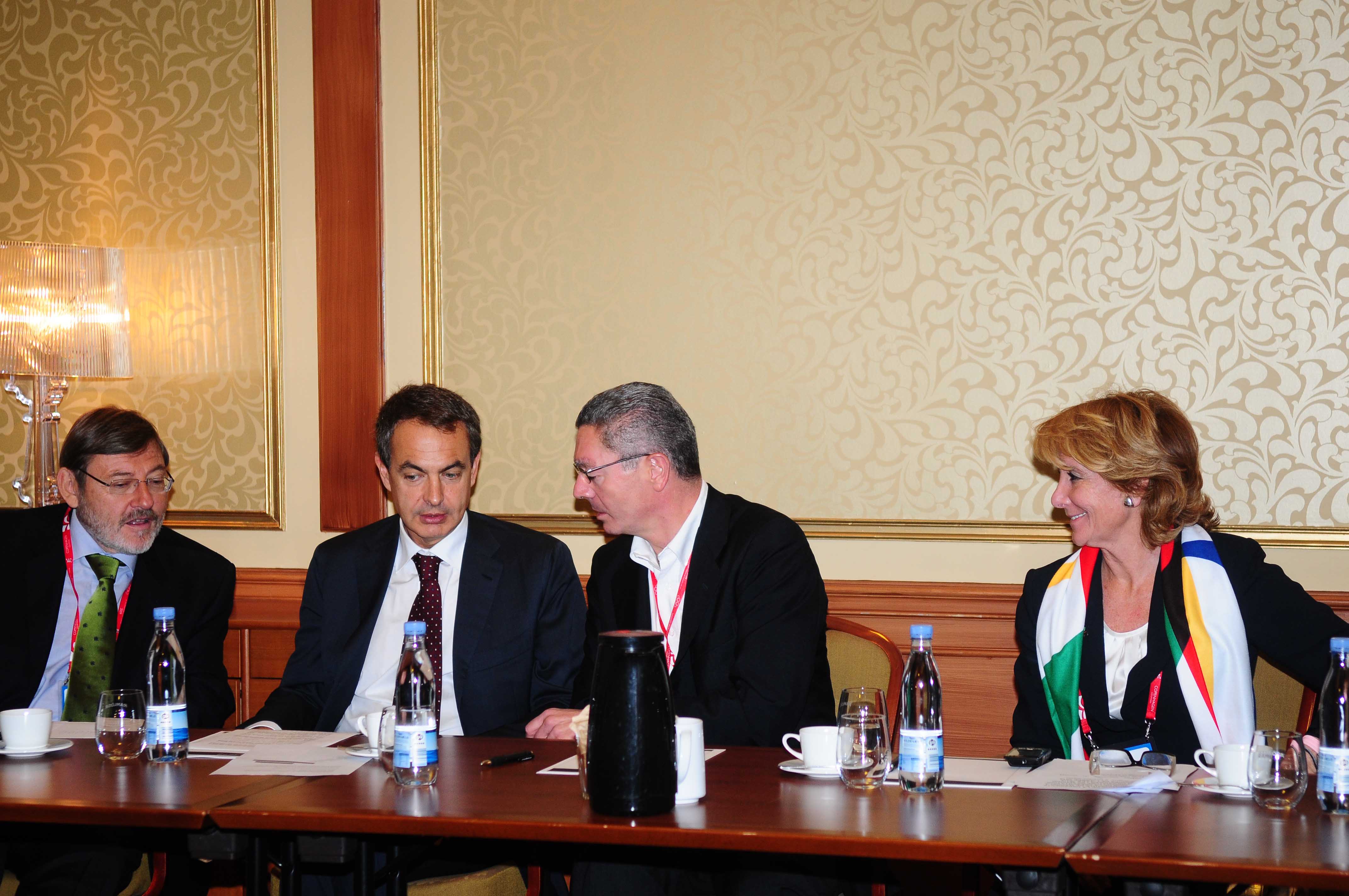 Los miembros de la delegación española que participarán esta tarde en la presentación de la candidatura de Madrid a los miembros del CIO durante el último ensayo