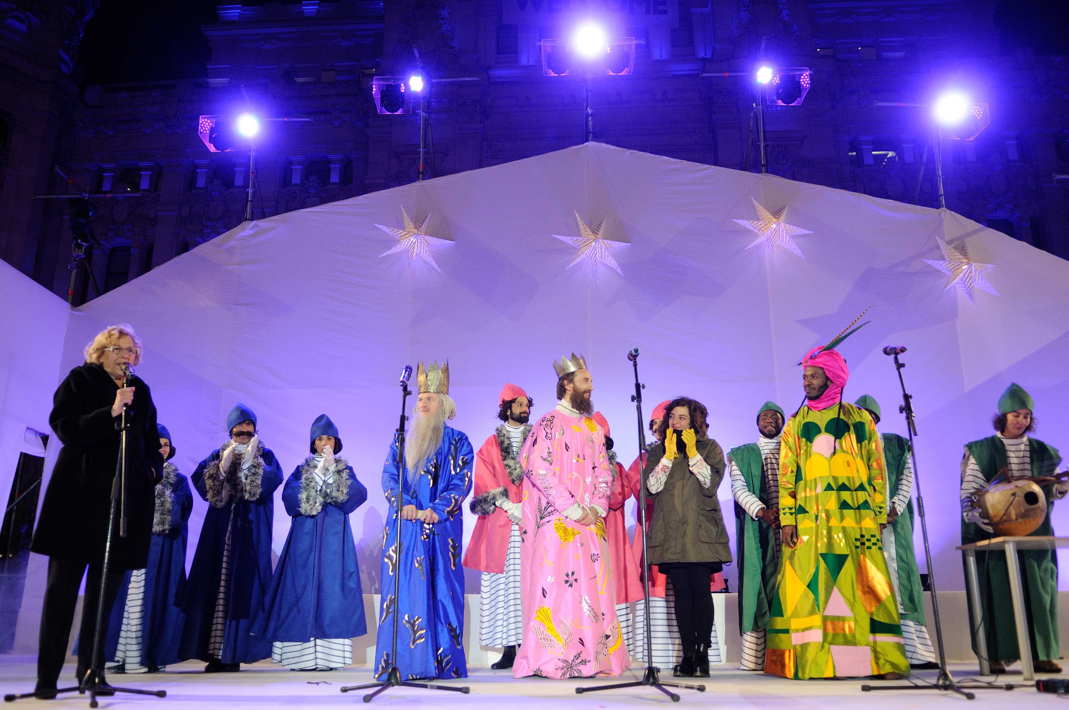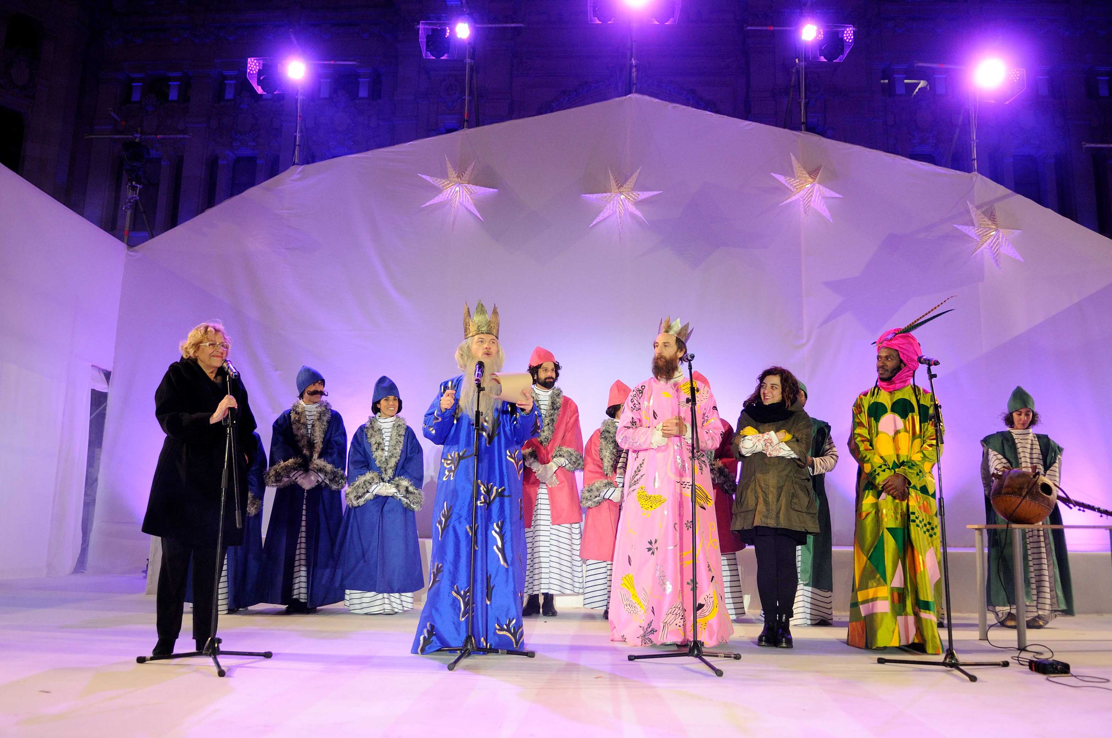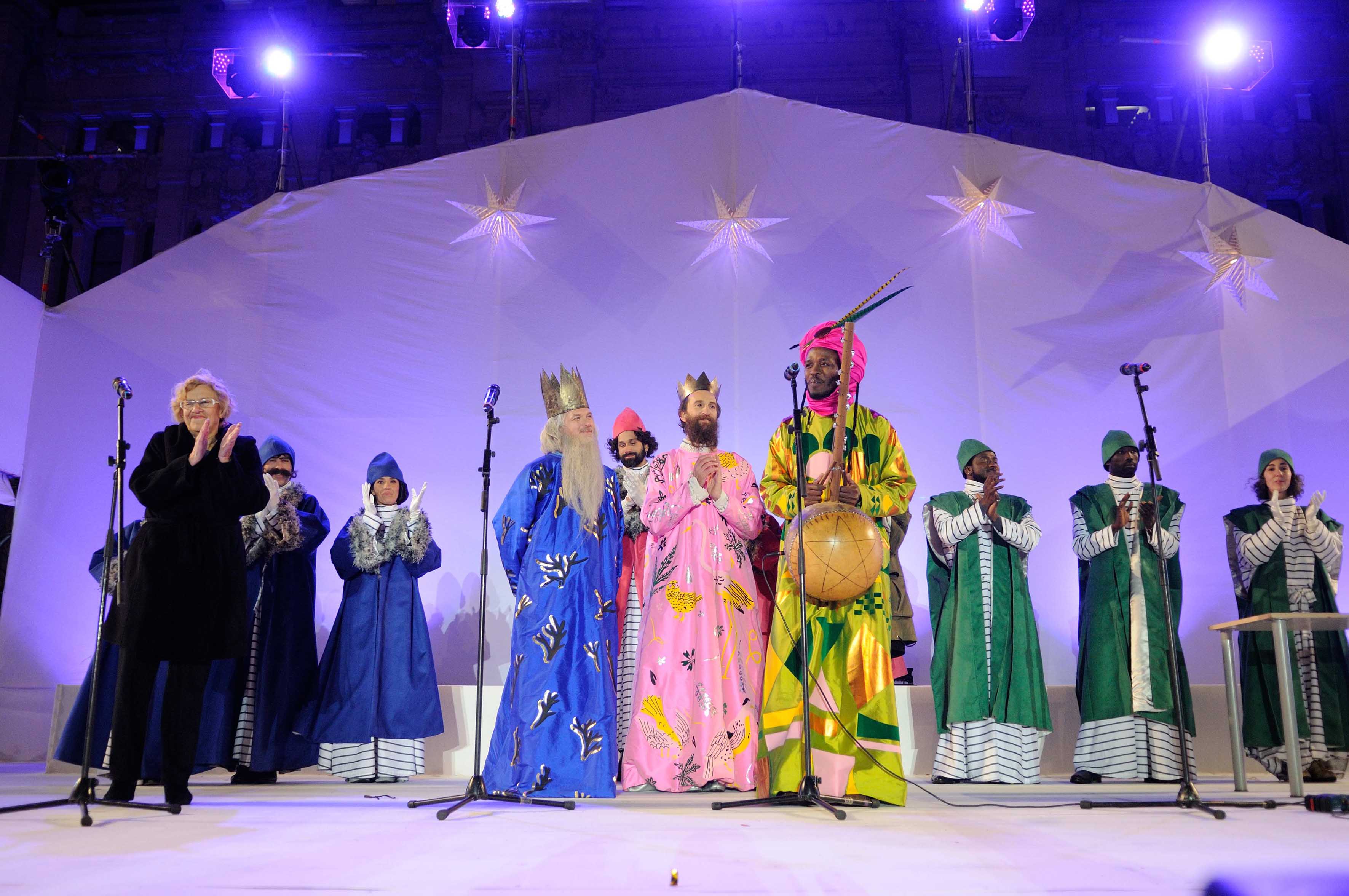 El desfile ha discurrido por el paseo de la Castellana, plaza del Doctor Marañón, glorieta de Emilio Castelar, plaza de Colón y paseo de Recoletos para terminar en la plaza de Cibeles. Allí, en torno a las 20.50 horas la alcaldesa de Madrid, Manuela Carmena, acompañada por la delegada de Cultura y Deportes, Celia Mayer, ha recibido a Sus Majestades de Oriente. Tras el discurso de Melchor, Baltasar ha querido regalar a los niños una canción tradicional de Guinea y Gaspar ha transmitido un mensaje de cariño, amor y alegría. Por su parte la alcaldesa de Madrid ha querido hacerles una advertencia: que "no se olviden de ningún niño en esta noche tan especial". Un espectáculo de fuegos artificiales ha cerrado la noche más mágica de estas fiestas.