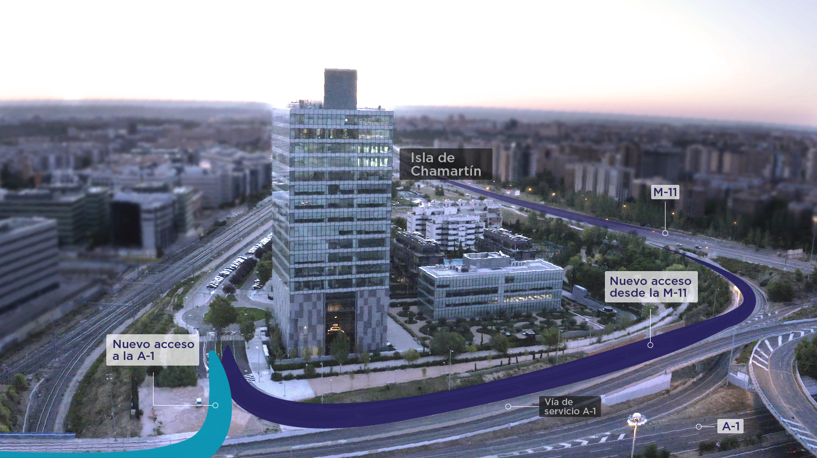 Este fin de semana se ha puesto en servicio la nueva salida a la A-1 desde la Isla de Chamartín, zona que comprende el triángulo formado por la A-1, la M-11 y la avenida de Manoteras. Previamente, en marzo de este año, ya había entrado en funcionamiento el nuevo acceso que conecta la M-11 y este ámbito. Ambas actuaciones han sido desarrolladas en virtud del convenio firmado por el Ayuntamiento de Madrid y MERLIN Properties, quien ha financiado y ejecutado los trabajos.