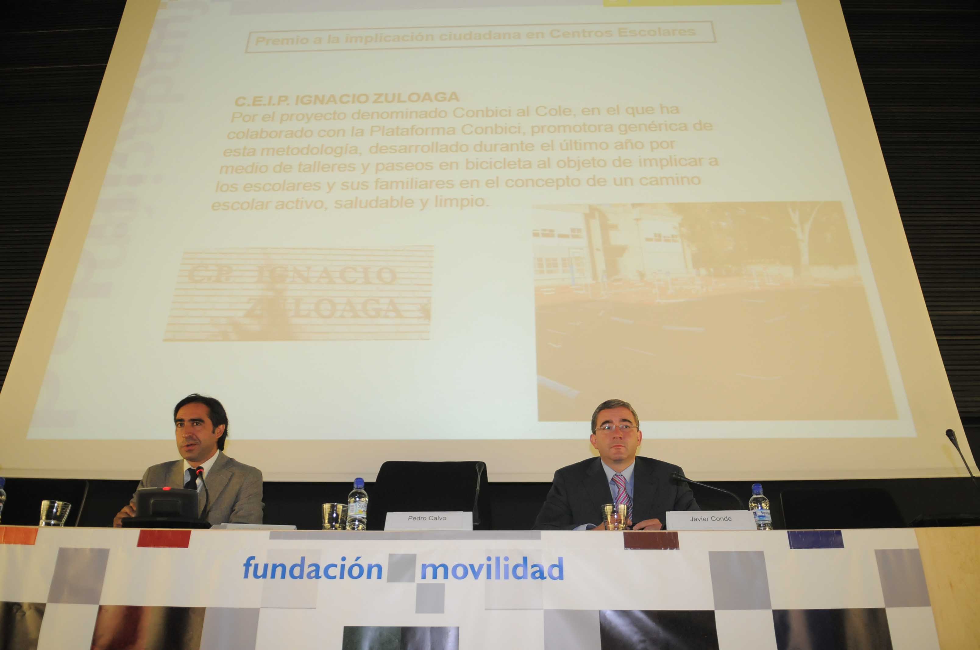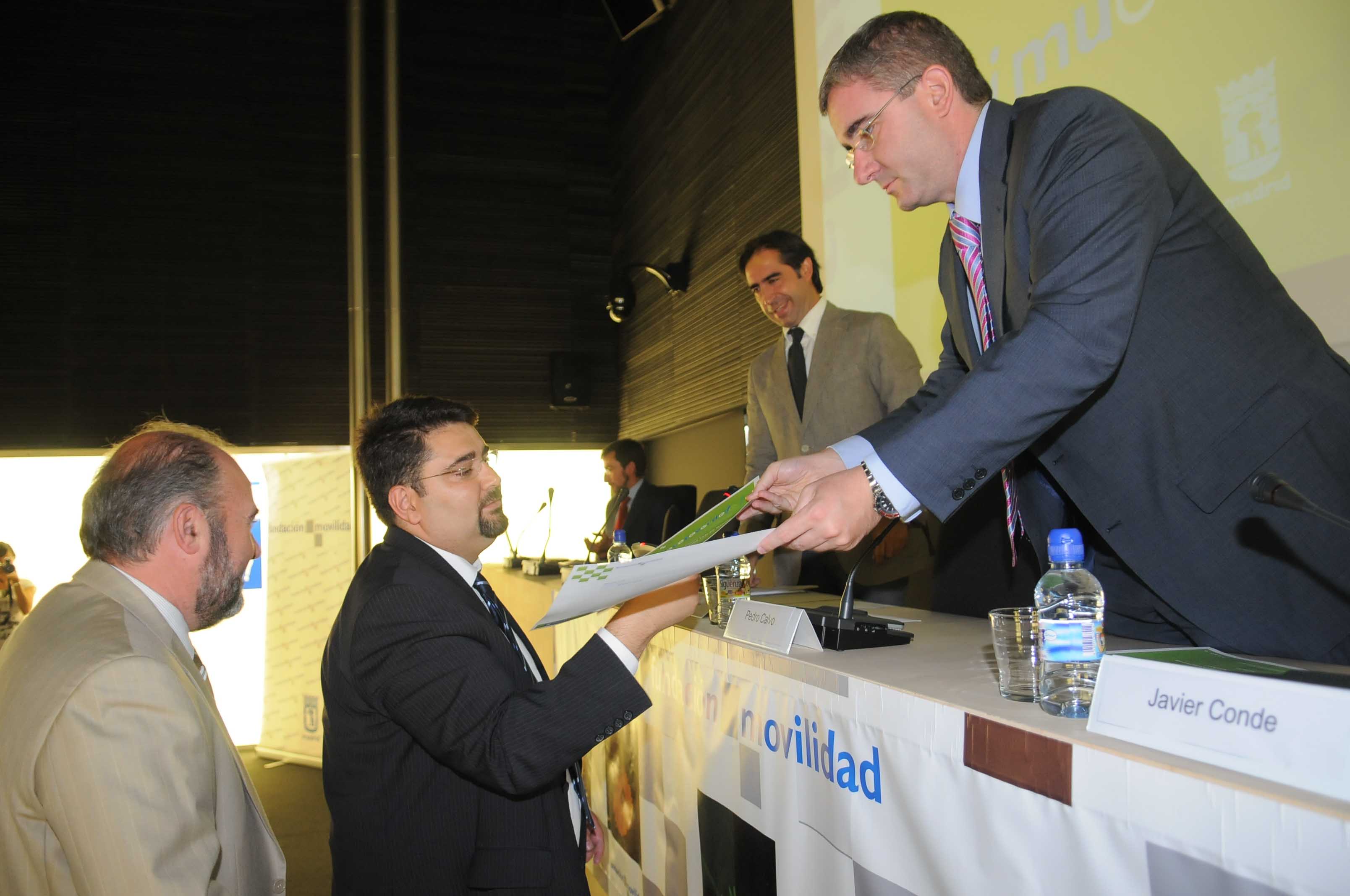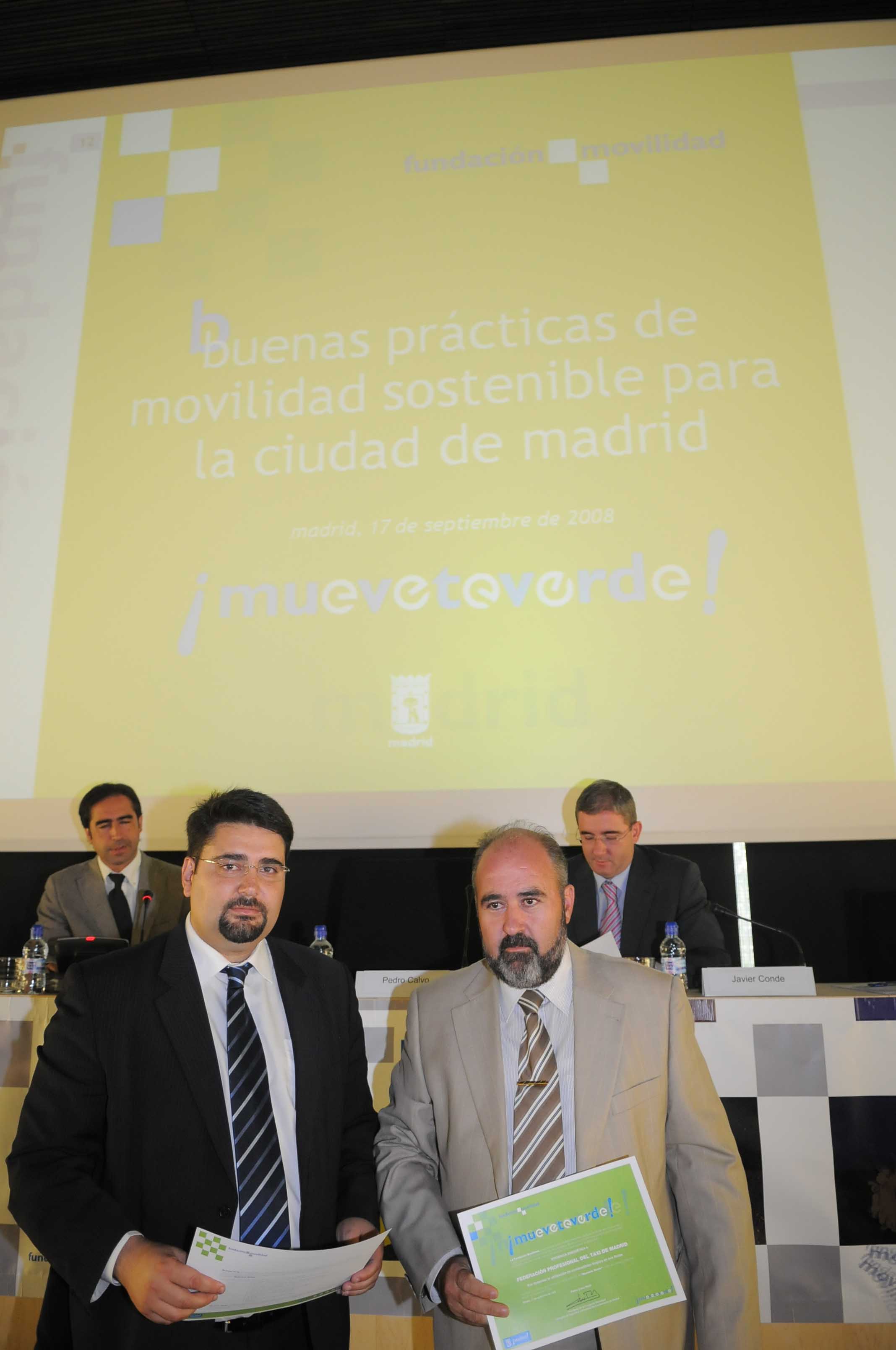 El director gerente de la EMT, Javier Conde, y el director de la Fundación Madrid Movilidad, Antonio Lucio, han entregado esta tarde los premios Muévete Verde, que se conceden a las personas e instituciones que han realizado iniciativas a favor de una movilidad sostenible en la ciudad. Los galardones han recaído en la Asociación Gremial del Taxi y la Federación Profesional del Taxi de Madrid, Mercamadrid, Telvent, Seur, Vodafone, Ferrovial-Cespa, Programa 22 minutos, Colegio Ignacio Zuloaga en las diversas categorías.