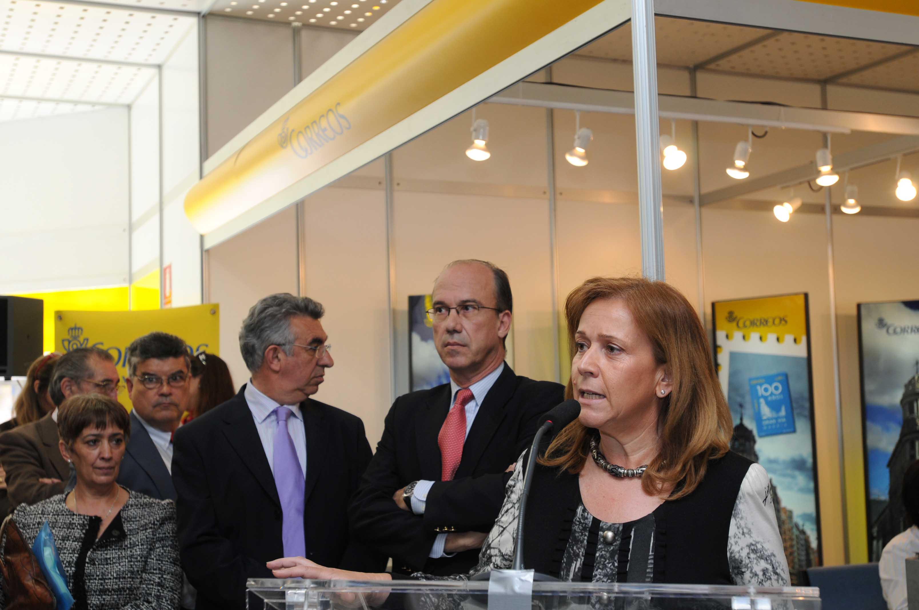 La delegada de Urbanismo, Pilar Martínez, durante la presentación del sello dedicado a Shanghái, en la XLII Feria Nacional del Sello