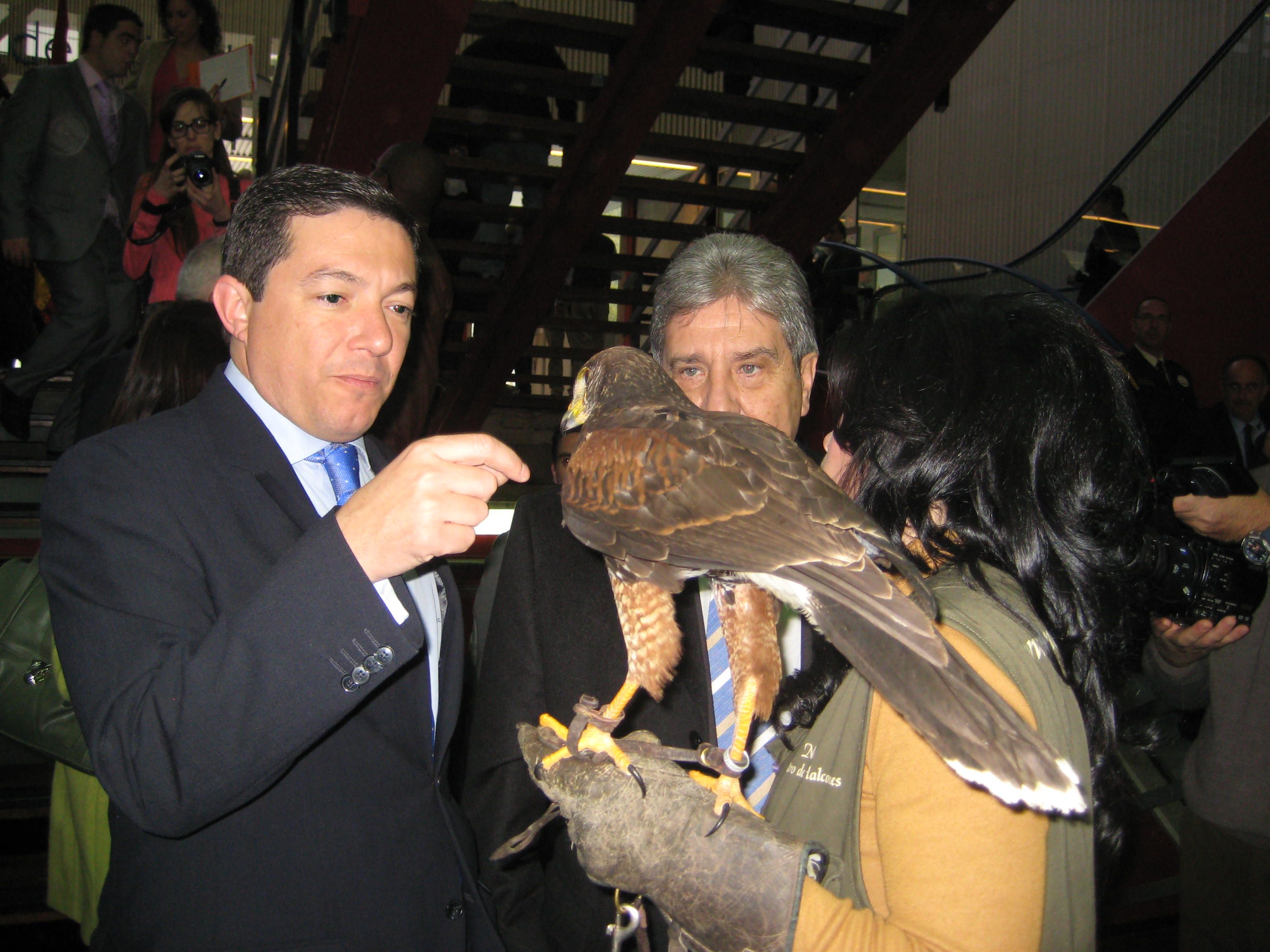 El delegado de Economía, Empleo y Participación Ciuddana, Pedro Calvo y el presidente de la Real Federación de Caza, Andrés Gutierrez Lara, durante la inauguración de la Feria Internacional de la Caza y las Armas