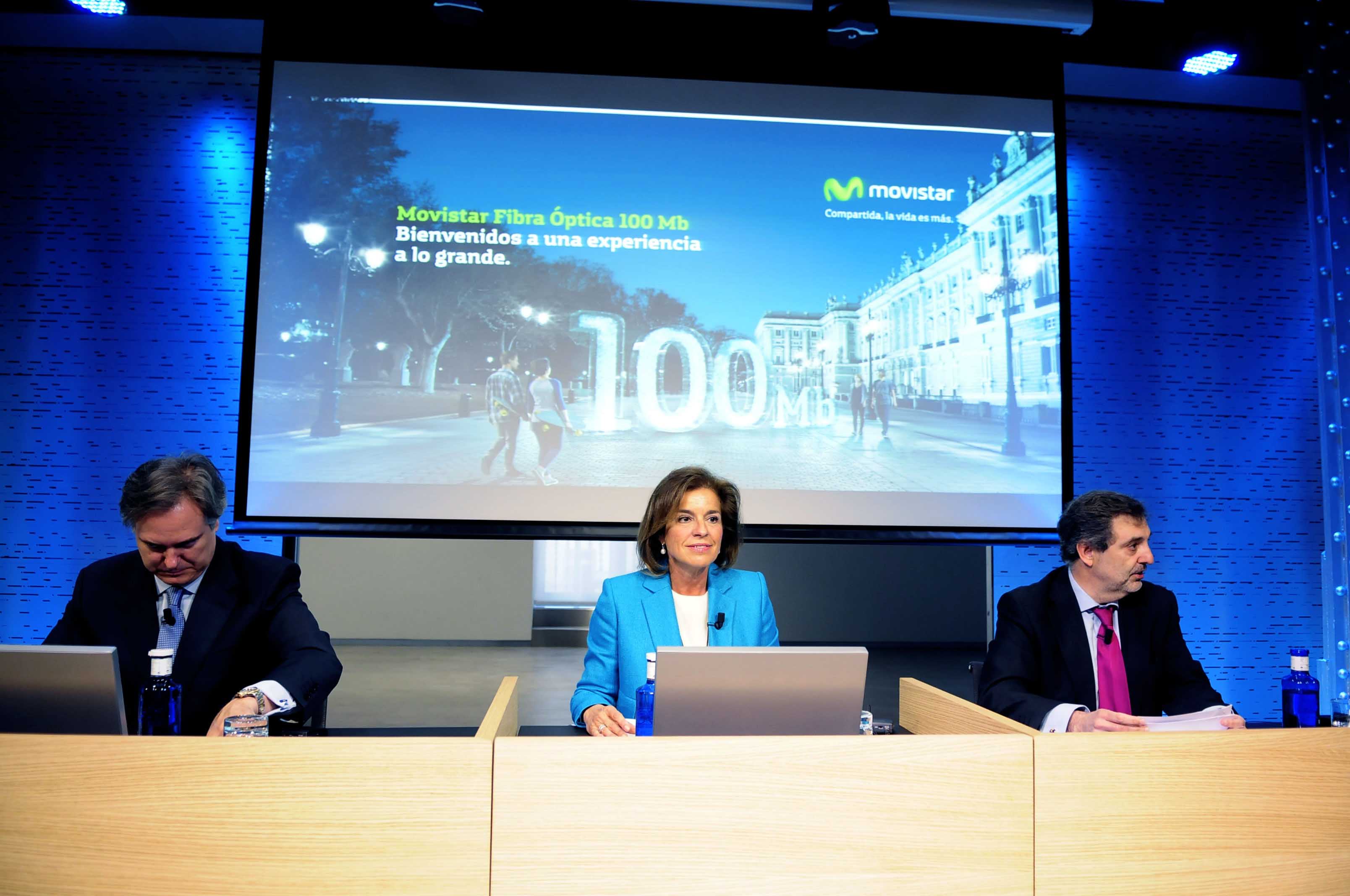 Imágenes de la alcaldesa de Madrid, Ana Botella, en la presentación del proyecto de fibra óptica de Telefónica para la capital.