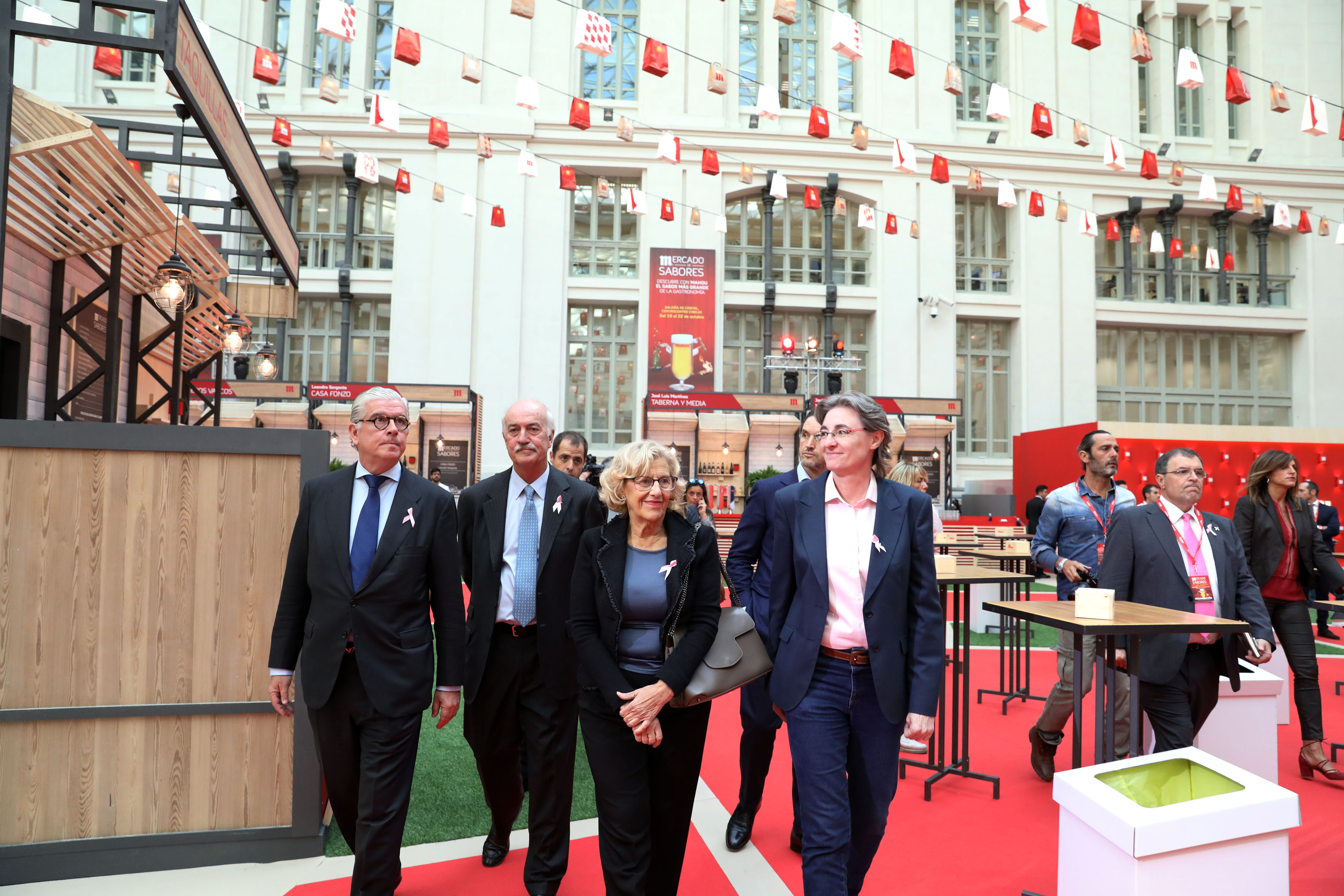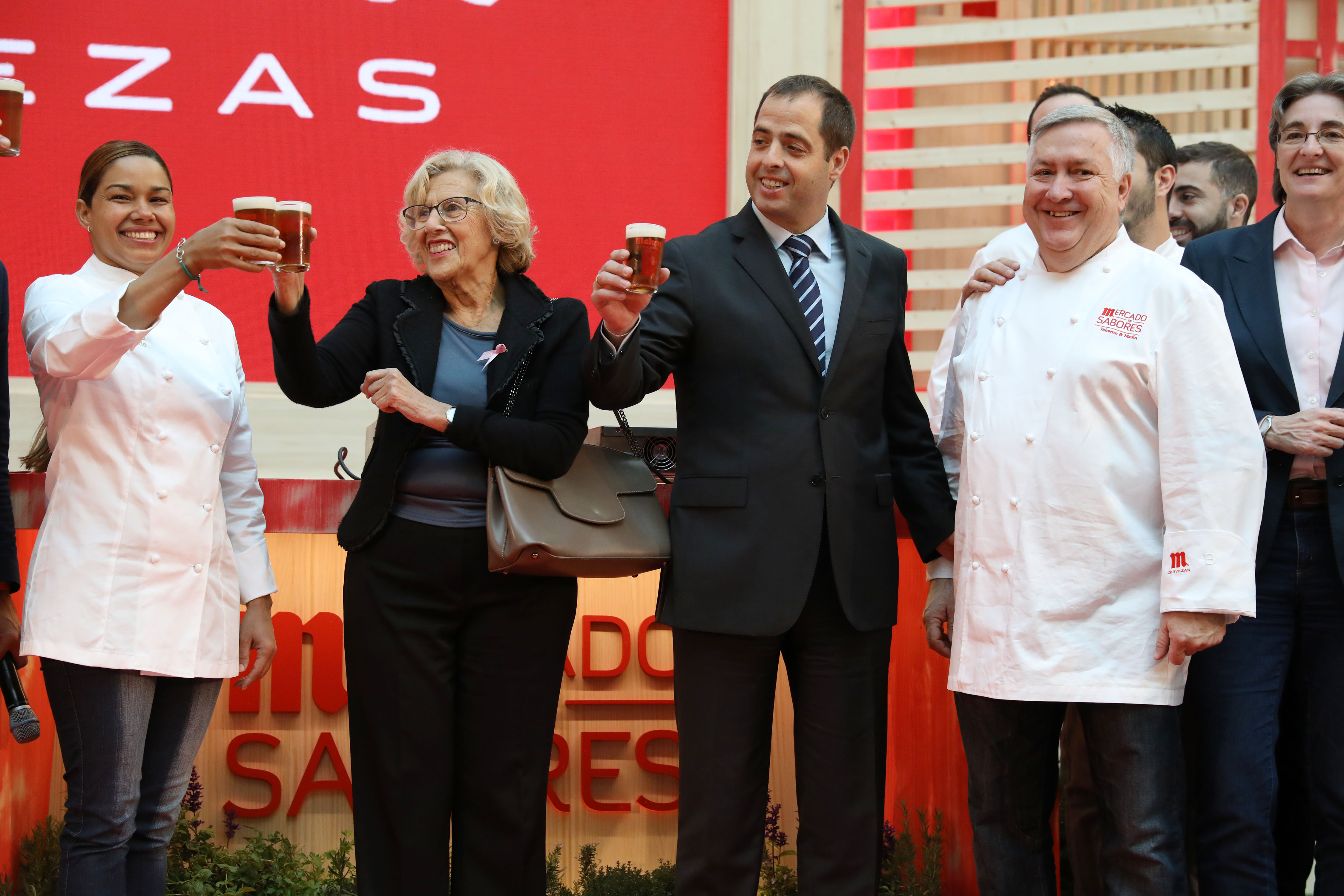 Las tapas han creado en Madrid un mapa con múltiples rutas y cientos de escalas. Desde hoy y hasta el domingo, 22, la Galería de Cristal del palacio de Cibeles es una cita obligada para quienes quieran disfrutar de uno de los iconos de la gastronomía española, la tapa. Manuela Carmena, alcaldesa de Madrid, acompañada por la delegada de Equidad, Derechos Sociales y Empleo, Marta Higueras, ha asistido esta mañana a la apertura de la cuarta edición de Mercado de Sabores, una iniciativa de Mahou que refleja el compromiso de la cervecera madrileña con la hostelería nacional, potenciando el maridaje entre la cerveza y la gastronomía española. “Cada vez que consolidamos una iniciativa de estas características vamos haciendo tradición, vamos haciendo cultura. Es bueno que en el calendario madrileño sepamos que siempre por estas fechas viene el Mercado de Sabores, que lo esperemos y que lo disfrutemos”. “Este patio –añadió– tiene por vocación acoger a todos en la inmensa diversidad. Quiero que sepáis que este Ayuntamiento es de todos y para todos”.
