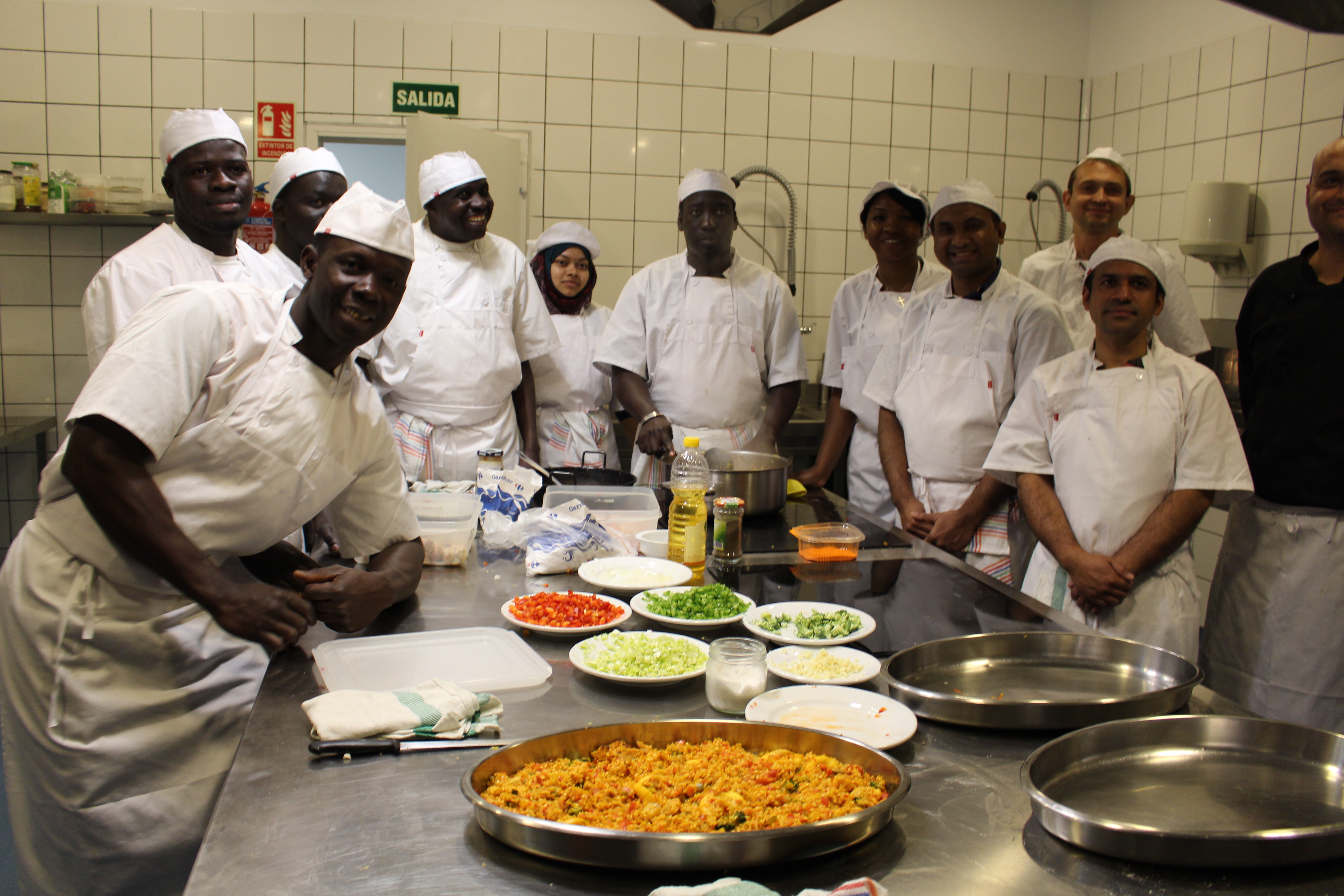 La mayoría del alumnado es de Senegal, Blangadés y una de las alumnas de Costa de Marfil. Todos los días han preparado sus menús, y que luego tomaban a la hora de comer. Como cierre y despedida del curso, un menú especial: paella, pan y dulce de hojaldre./