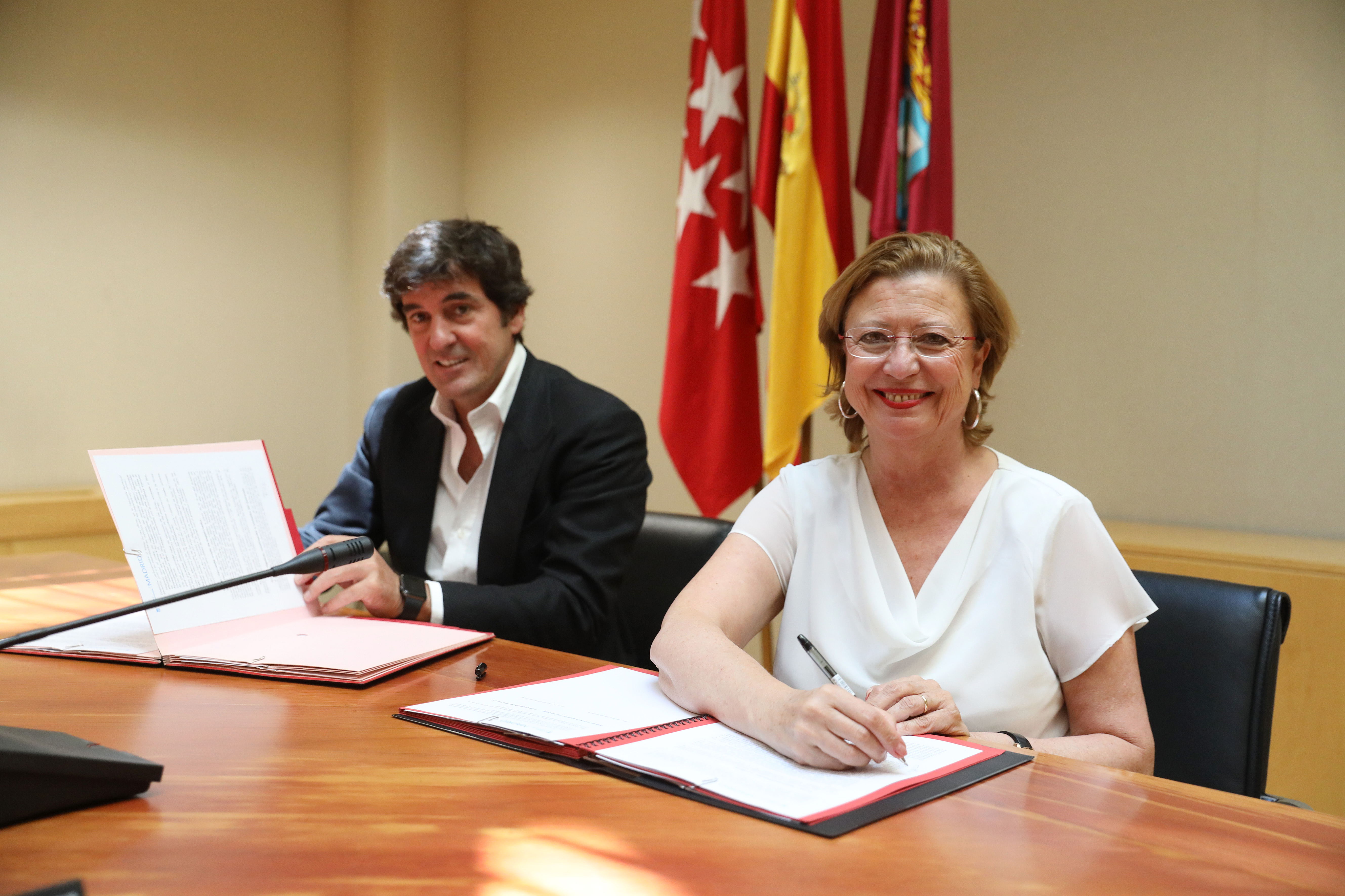 La delegada del Área de Gobierno de Obras y Equipamientos, Paloma García Romero, y el presidente de la empresa Caledonian JF, Enrique López, han suscrito hoy un convenio para realizar obras de mejora en la calle Javier Ferrero, del distrito de Chamartín, con el objetivo de mejorar su aspecto visual y sus condiciones de utilización por parte de los vecinos y usuarios.