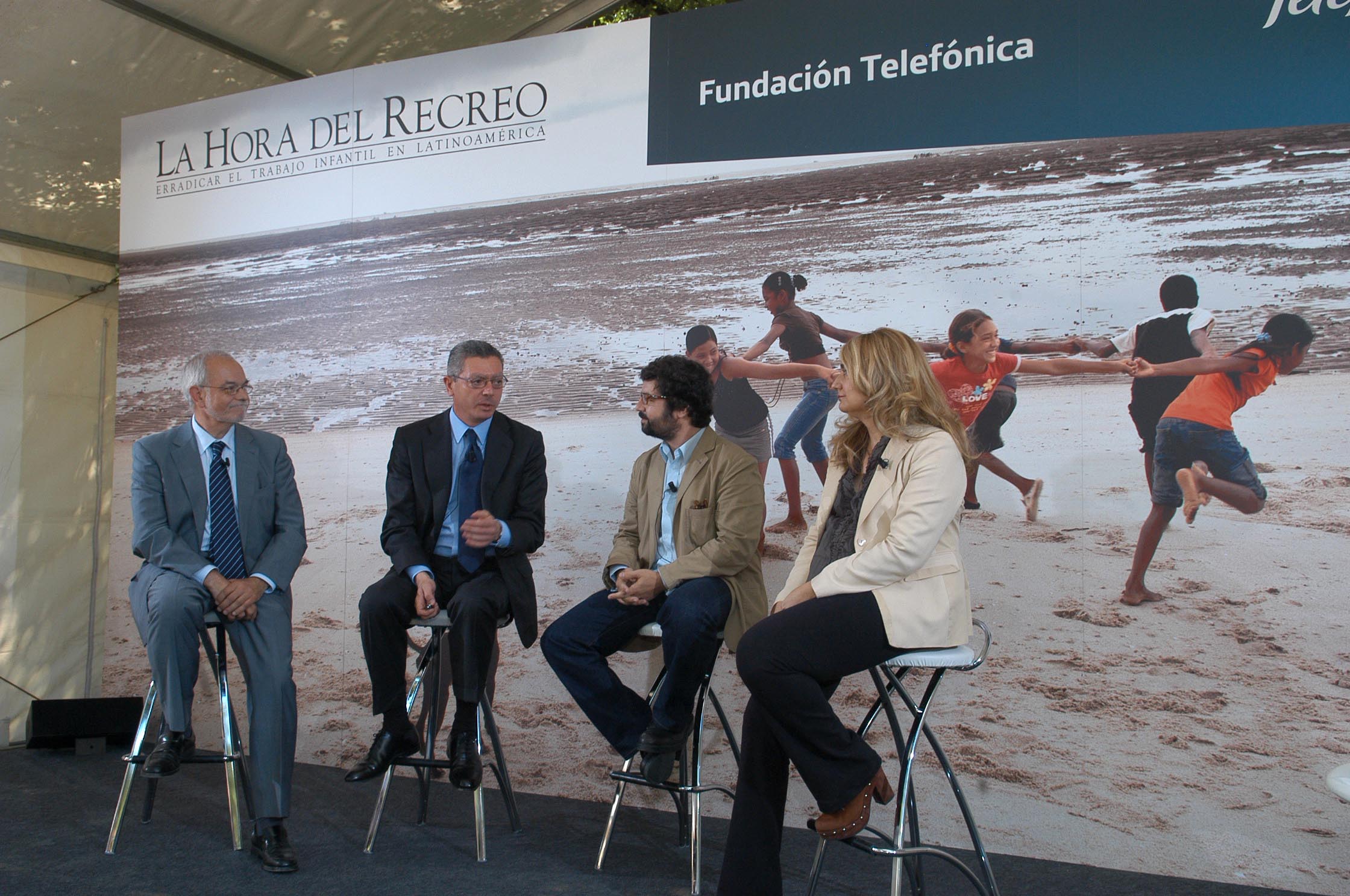 El alcalde de Madrid, Alberto Ruiz-Gallardón, ha asistido hoy a la presentación del libro "La Hora del Recreo", en el parque del Retiro. Se trata de un conjunto de fotografías y relatos que cuentan la dura realidad de más de 14 millones de niños y adolescentes obligados, según datos de la OIT, al trabajo diario. "No podemos permanecer indiferentes ante una situación que, aunque lejana, padecen millones de niños", ha dicho el alcalde durante la presentación, calificando las fotos como un "espejo que nos devuelve una infancia muy distinta a la que viven los niños de aquí".