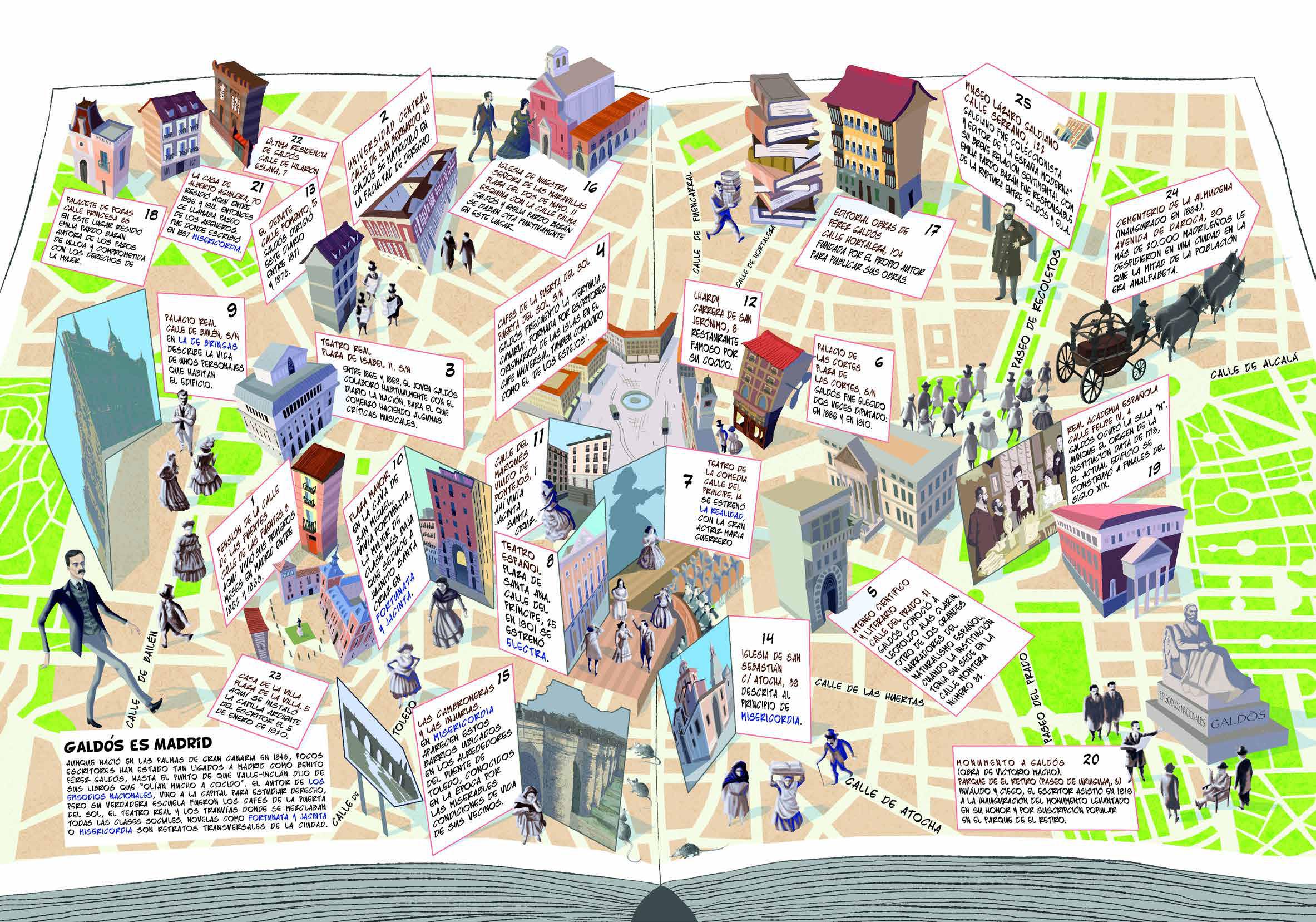 ‘Galdós es Madrid’, mapa cultural ilustrado del Ayuntamiento para celebrar el Día del Libro