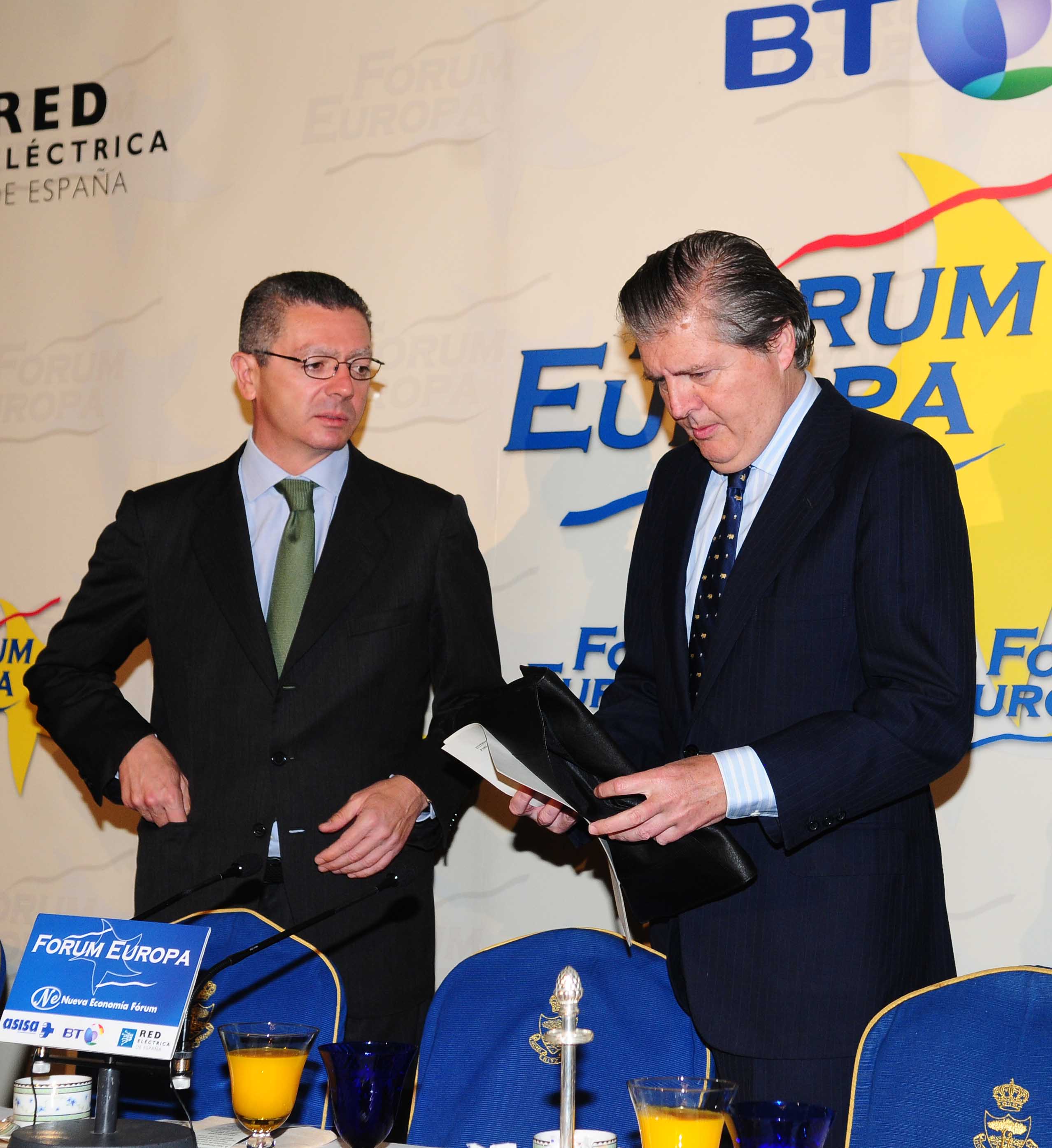 El alcalde de la Ciudad de Madrid, Alberto Ruiz-Gallardón, ha presentado al eurodiputado del PP y presidente del Colegio de Europa, que ha participado en el desayuno informativo Forum Europa.