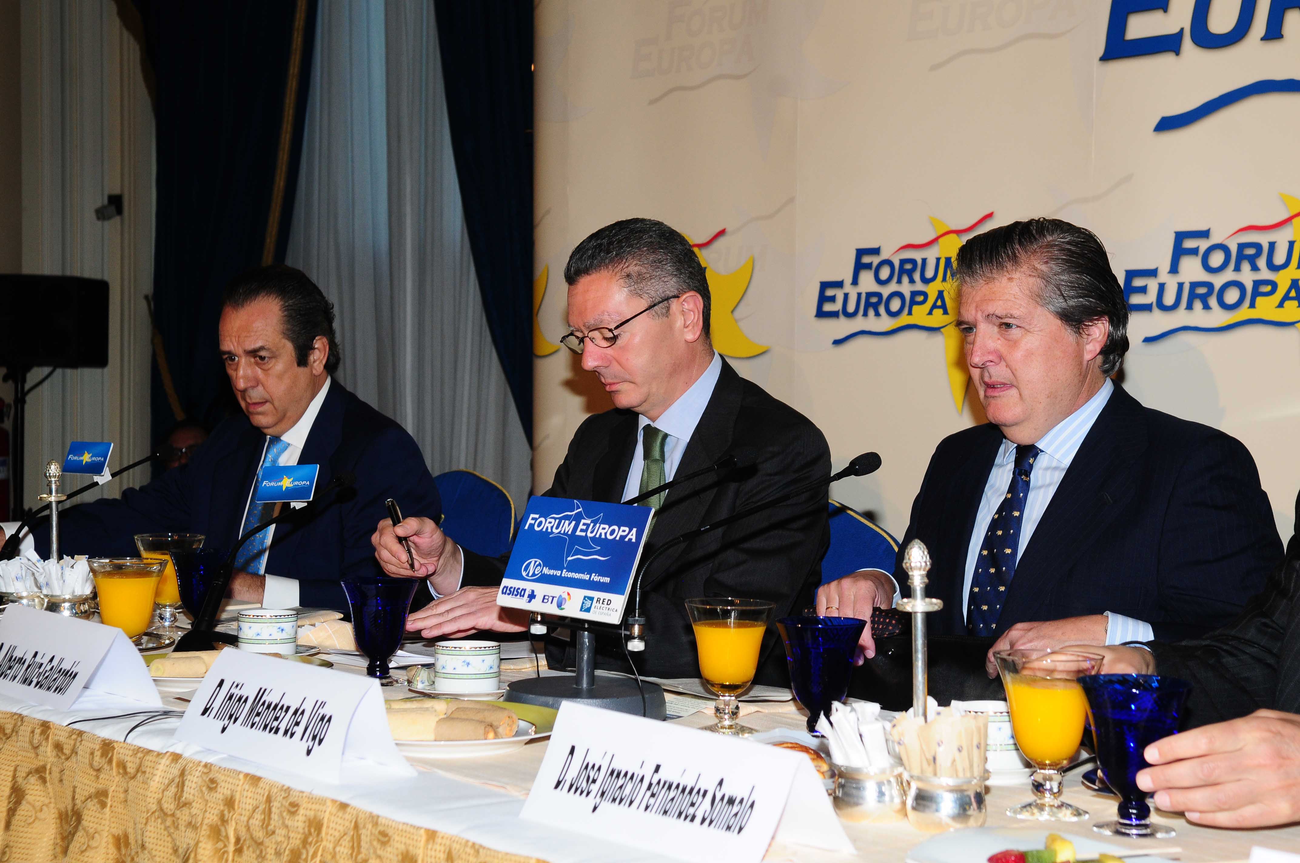 “Uno de los europeístas más sólidos y brillantes que ha dado España”. La profesionalidad y pasión de Iñigo Méndez de Vigo por este continente es ejemplo “de la tradición europeísta de la que un día saldrá una España más fuerte y respetada”. Con estas palabras ha presentado hoy el alcalde de la Ciudad de Madrid, Alberto Ruiz-Gallardón, al eurodiputado del PP y presidente del Colegio de Europa, que ha participado en el desayuno informativo Forum Europa. Recién concluido el semestre español de presidencia de los Consejos de Ministros de la Unión Europea, la personalidad de Méndez de Vigo, ha dicho Ruiz-Gallardón, es lo suficientemente cabal como para cumplir dos objetivos fundamentales. “El primero, incorporarnos a ese proceso con rigor y solvencia en el momento en que España supere el periodo excepcional de decaimiento en que se encuentra y vuelva a hacer valer su potencial. El otro, afrontar la siempre difícil labor de hacer de la Unión algo cercano al ciudadano”. Méndez posee un amplio currículo: letrado de las Cortes desde 1981; premio Salvador de Madariaga de periodismo; catedrático honorario Jean Monnet en la Universidad Complutense; presidió la delegación de eurodiputados que participó en la elaboración de la Carta de los Derechos y actualmente, es el presidente del Consejo de Administración del Colegio de Europa.