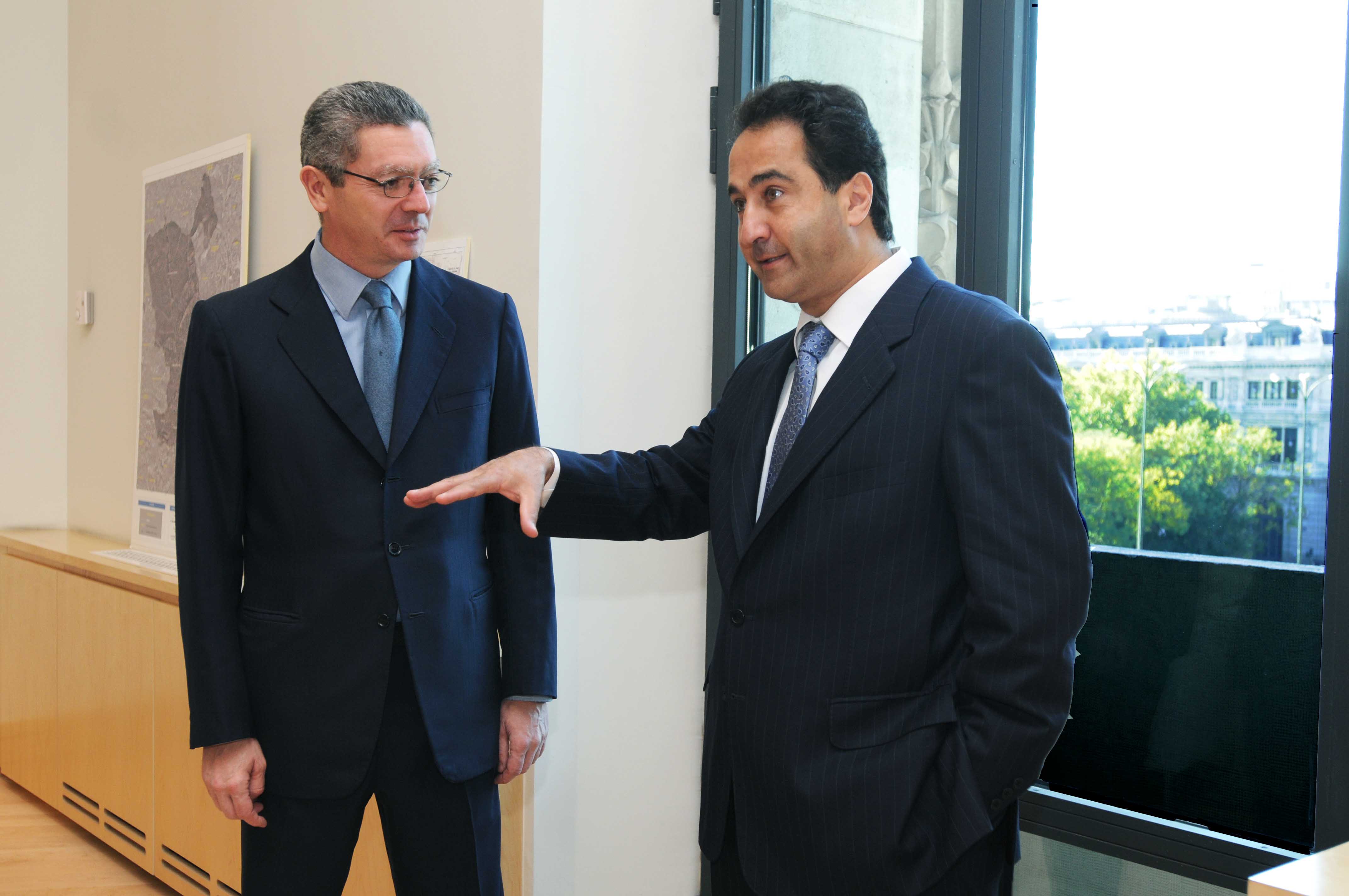 Los acaldes de Madrid y Santiago de Chile, Alberto Ruiz-Gallardón y Pablo Zalaquett, durante el encuentro que han mantenido hoy en el Palacio de Cibeles