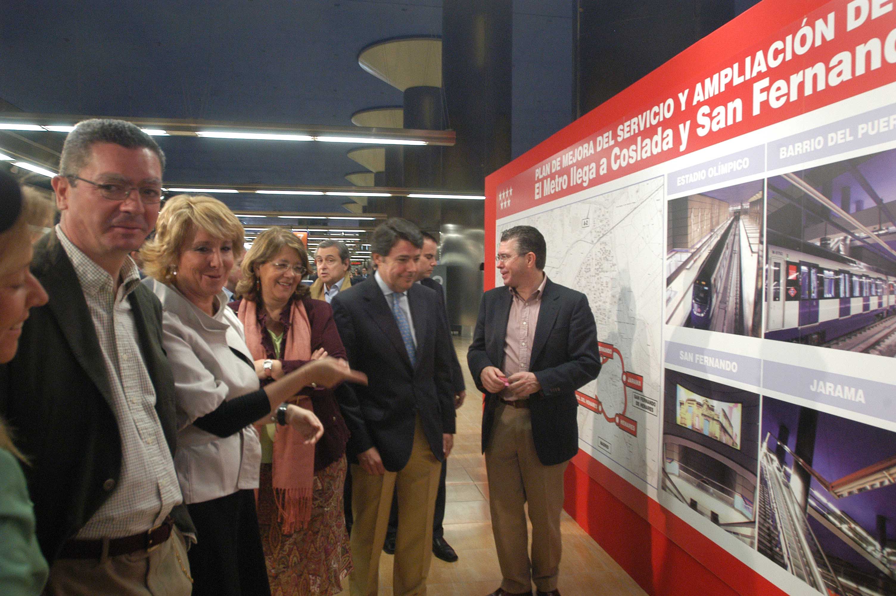 El alcalde de la Ciudad de Madrid, Alberto Ruiz-Gallardón, ha recibido esta mañana a la presidenta de la Comunidad de Madrid, Esperanza Aguirre, en la nueva estación de Metro “Villa Olímpica”, donde el tren ha roto la cinta inaugural del Metroeste, la prolongación de la línea 7 de Metro que llega hasta los municipios de Coslada y San Fernando de Henares, una actuación que beneficiará a cerca de 120.000 ciudadanos. A partir de las tres de la tarde de hoy, la nueva línea tendrá ocho nuevas estaciones que se ubicarán, una en Madrid capital –Estadio Olímpico-, cuatro en Coslada y tres en San Fernando. Las nuevas estaciones, que partirán de Las Musas, se llamarán: Estadio Olímpico, Barrio del Puerto, Coslada Central, La Rambla, San Fernando, Jarama , Henares y Hospital Henares./