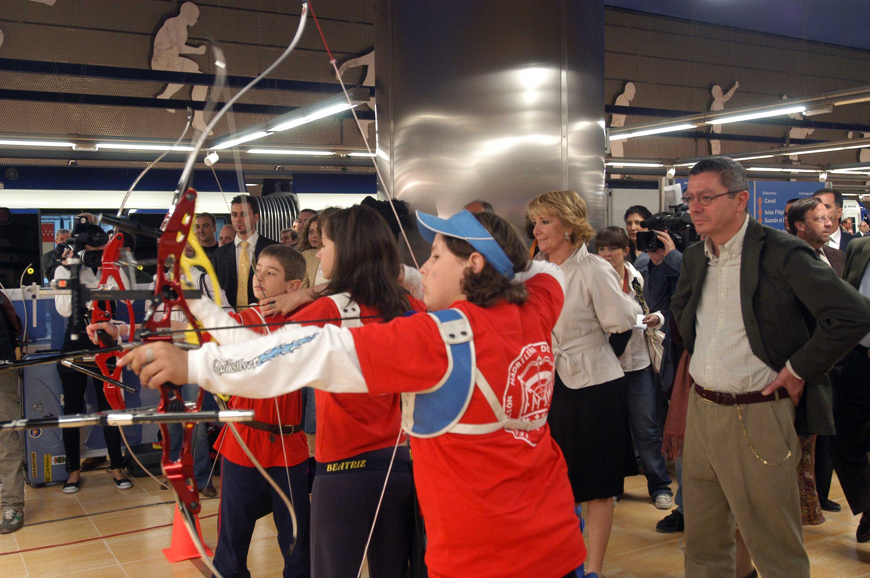 El alcalde de la Ciudad de Madrid, Alberto Ruiz-Gallardón, durante la inauguración del Metroeste, acto en el que ha estado acompañado por la presidenta de la Comunidad, Esperanza Aguirre.