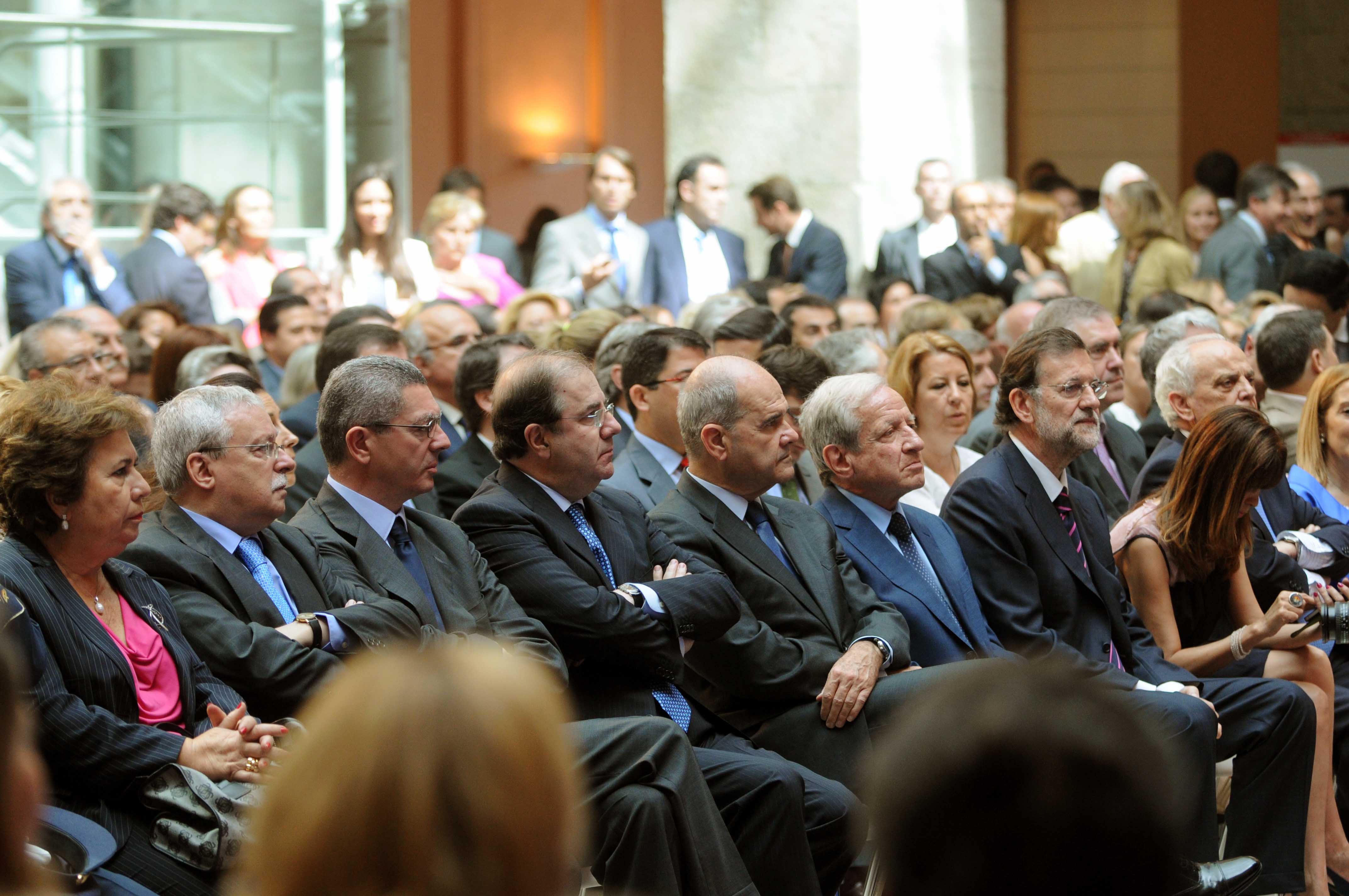 El alcalde de la Ciudad de Madrid, Alberto Ruiz-Gallardón, ha asistido hoy a la toma de posesión de la presidenta de la Comunidad, Esperanza Aguirre. El acto ha tenido lugar en la sede del Gobierno regional, en la Puerta del Sol, y al mismo han asistido –además del alcalde– el líder del PP, Mariano Rajoy, el vicepresidente tercero del Gobierno, Manuel Chaves, el expresidente de la Comunidad Joaquín Leguina, el presidente de Castilla y León, Juan Vicente Herrera, políticos, empresarios, sindicatos y la familia de la presidenta, entre otros. Aguirre inicia su tercera legislatura al frente del Ejecutivo madrileño.