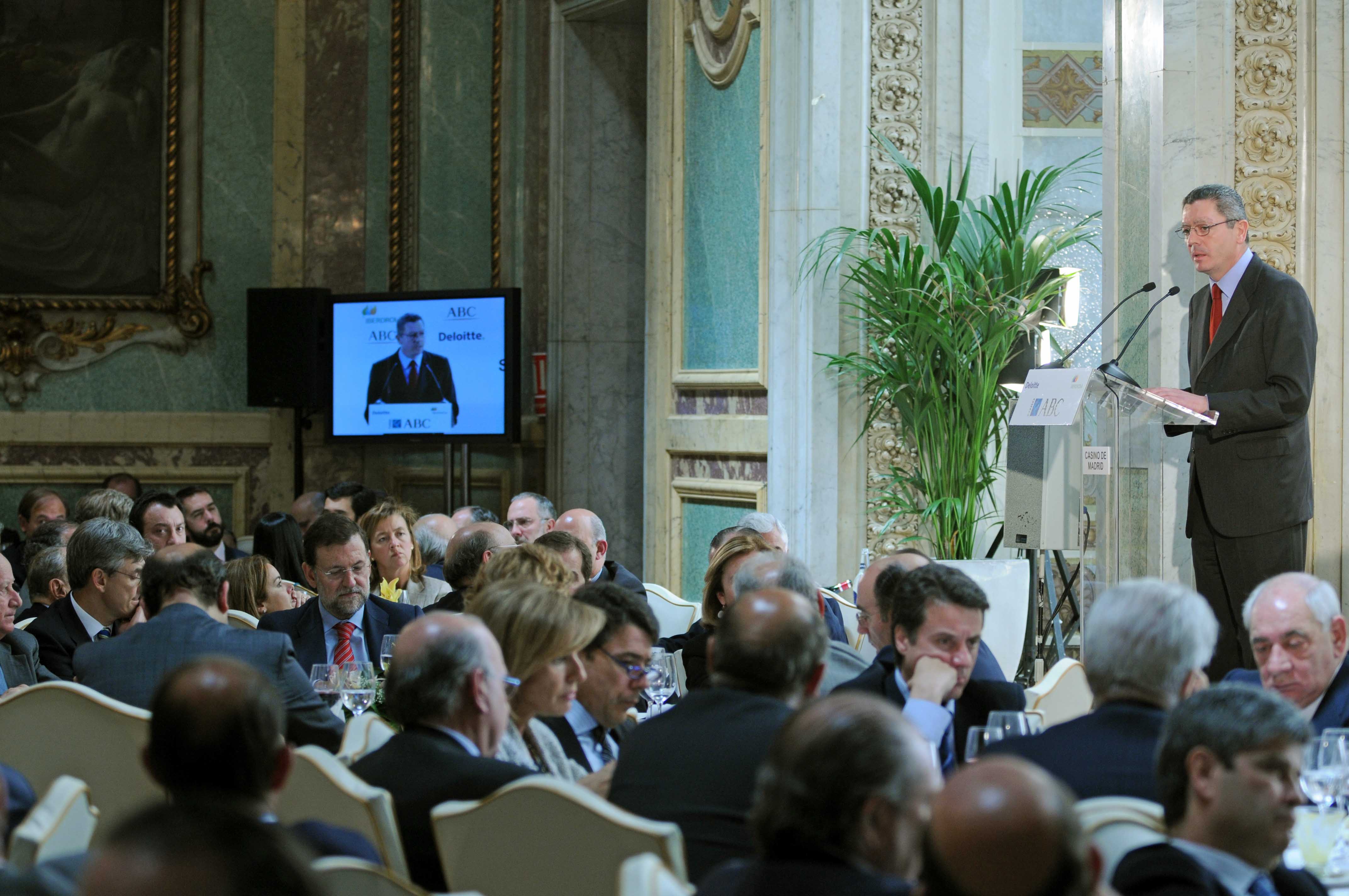 "Un partido político no es, no debe ser nunca, un fin en sí mismo ni para sí mismo. Antes al contrario, tiene que constituirse en un instrumento al servicio de la sociedad, de sus necesidades y anhelos, de su reflexión ante los cambios, de sus esperanzas para superarlos". El alcalde de la Ciudad de Madrid, Alberto Ruiz-Gallardón, ha pronunciado estas palabras en el marco de una extensa conferencia en el Foro de ABC. Ante los principales líderes populares, Ruiz-Gallardón ha reivindicado para su partido el centro político desde un "ambiente de respeto, de diálogo y de concertación", y ha respaldado a Mariano Rajoy, a quien se ha referido como "el mejor director" y quien dará "fuerza y coherencia" al proyecto del PP.
