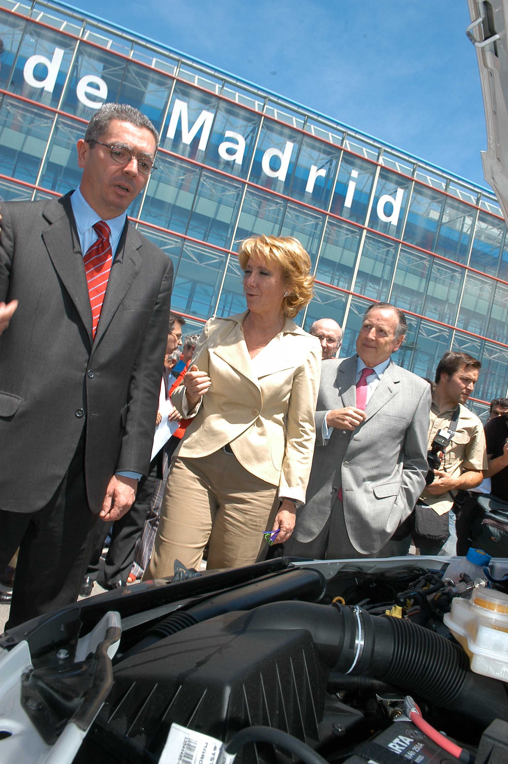 Distintas imágenes de la firma del convenio entre Ayuntamiento, Comunidad, Gas Natural y asociaciones y empresas del sector para fomentar el uso de gas natural como combustible en la flota de vehículos ligeros de la Comunidad de Madrid