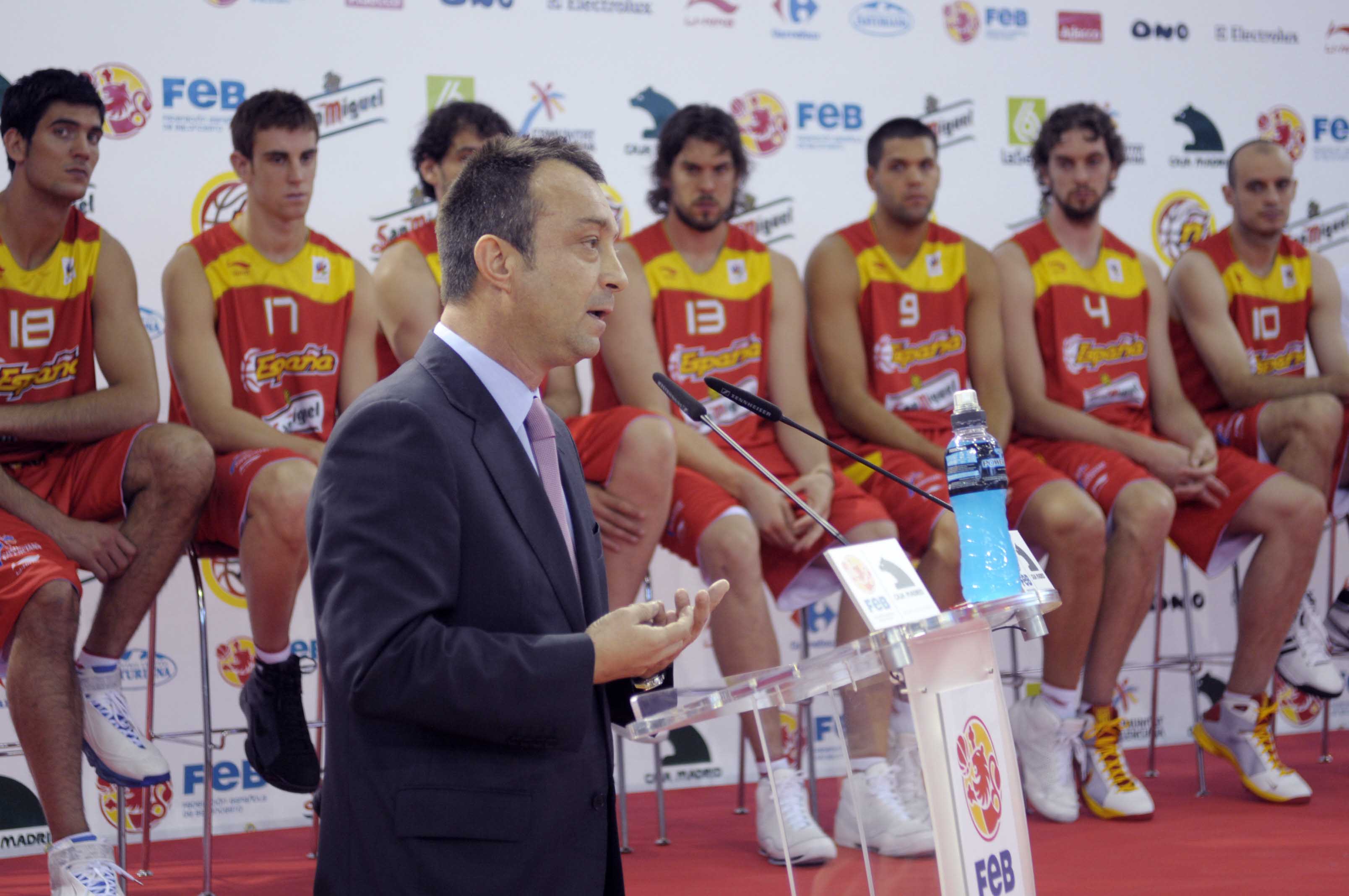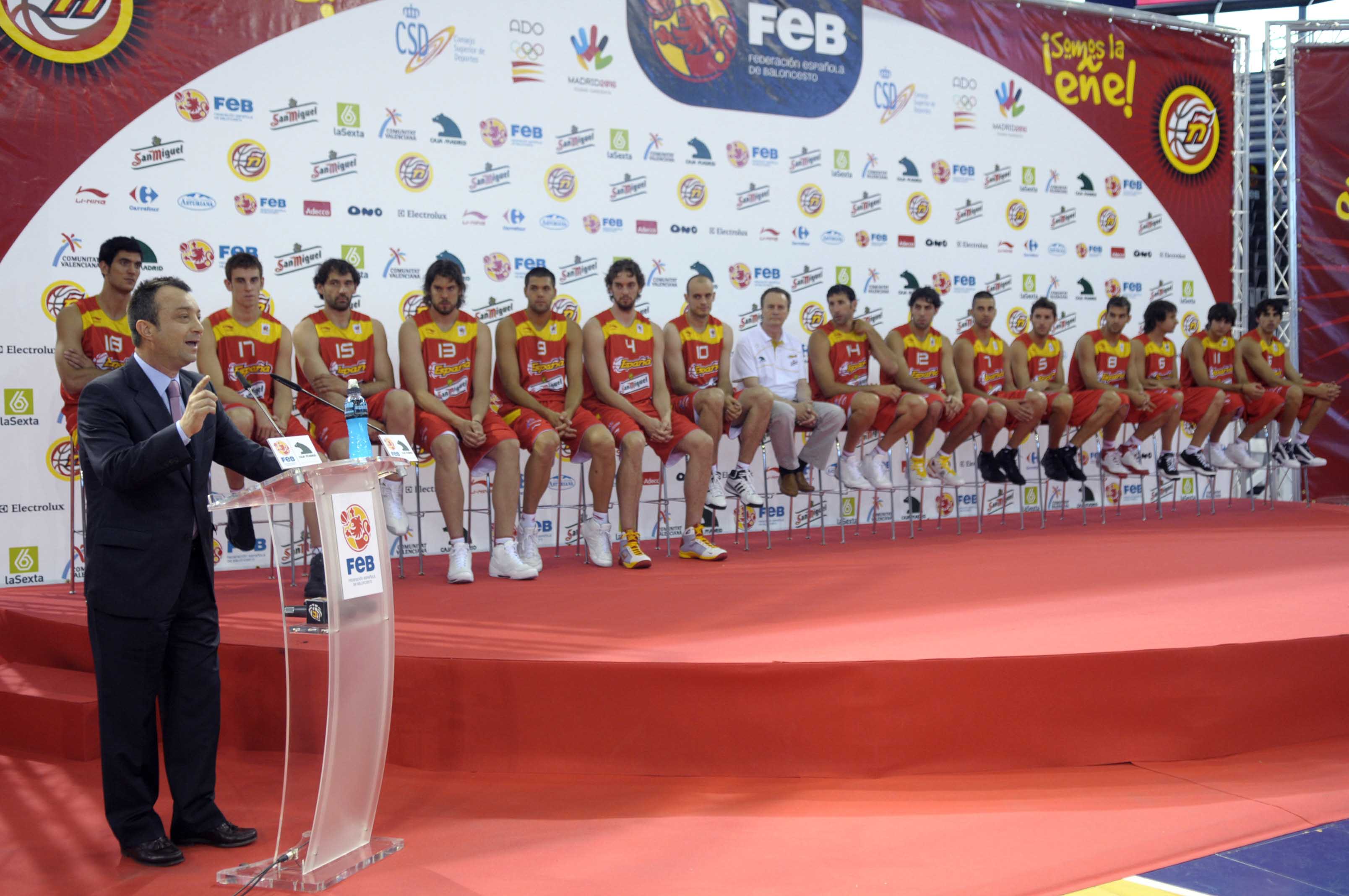 El vicealcalde de la Ciudad de Madrid, Manuel cobo ha asistido hoy a la presentación de los jugadores de la selección masculina de baloncesto que representará a España en los Juegos Olímpicos de Pekín. Durante la presentación, Pau Gasol exhibió la bandera olímpica "Madrid 2016, ciudad candidata".