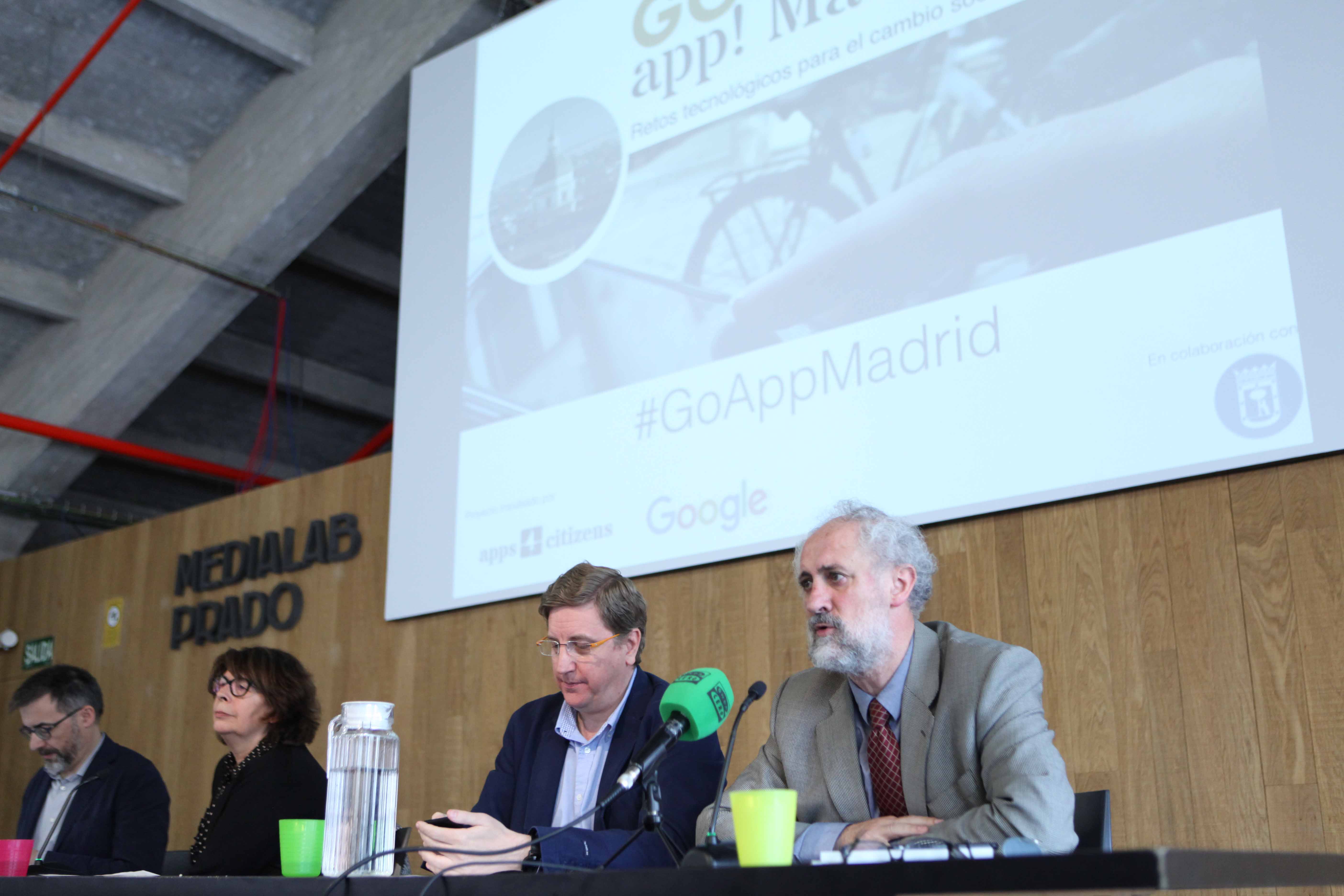 Comienza GoApp Madrid, 2016, un concurso organizado por Google, en colaboración con Apps4citizens y algunos gobiernos locales y autonómicos, entre los que se cuenta el Ayuntamiento de Madrid. A través del Área de Medio Ambiente y Movilidad, el Gobierno municipal se incorpora a un proyecto “con el que se trata de involucrar a la ciudadanía en la creación de proyectos e innovaciones tecnológicas que incidan en el cambio social y en la mejora de la calidad ambiental de la ciudad”, según ha explicado Inés Sabanés, que ha intervenido en el acto de presentación del concurso, que ha tenido lugar en MediaLab Prado este mediodía.