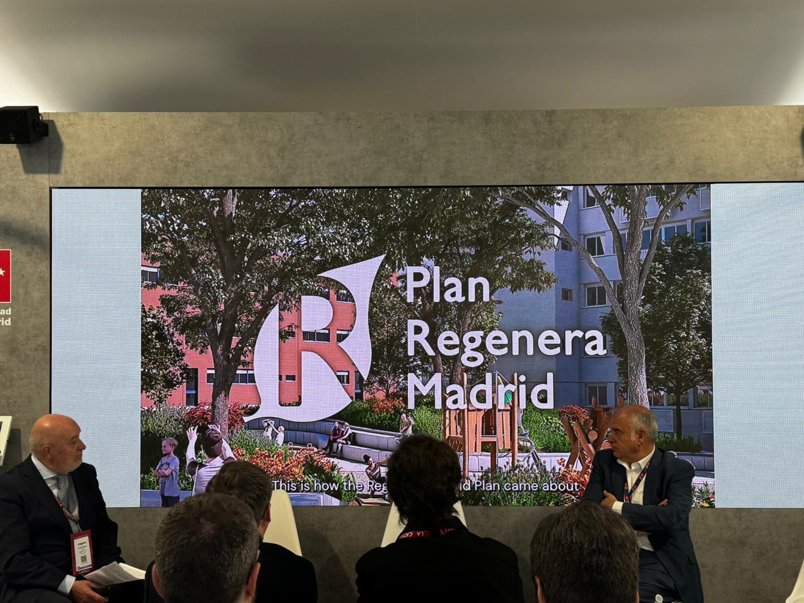 Uno de los ejes principales de la intervención del delegado ha sido el Plan Regenera Madrid, la estrategia municipal destinada a mejorar los barrios construidos antes de 1985. Este plan actuará sobre más de 85 kilómetros cuadrados de tejido urbano, lo que supone alrededor del 60 % de los barrios residenciales consolidados de la ciudad, y beneficiará a 1,2 millones de viviendas y cerca de 2,6 millones de habitantes, el 75 % de la población madrileña.