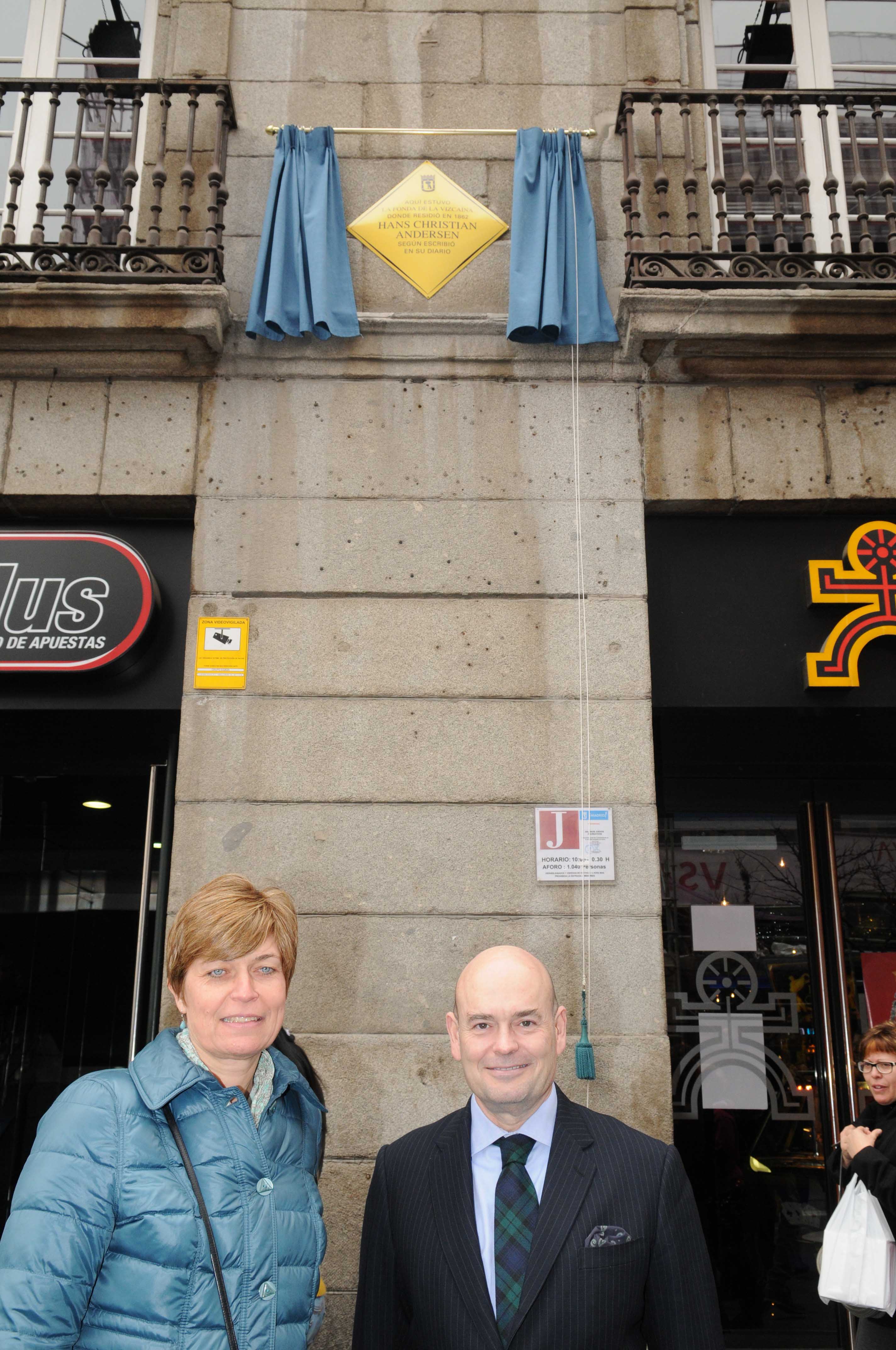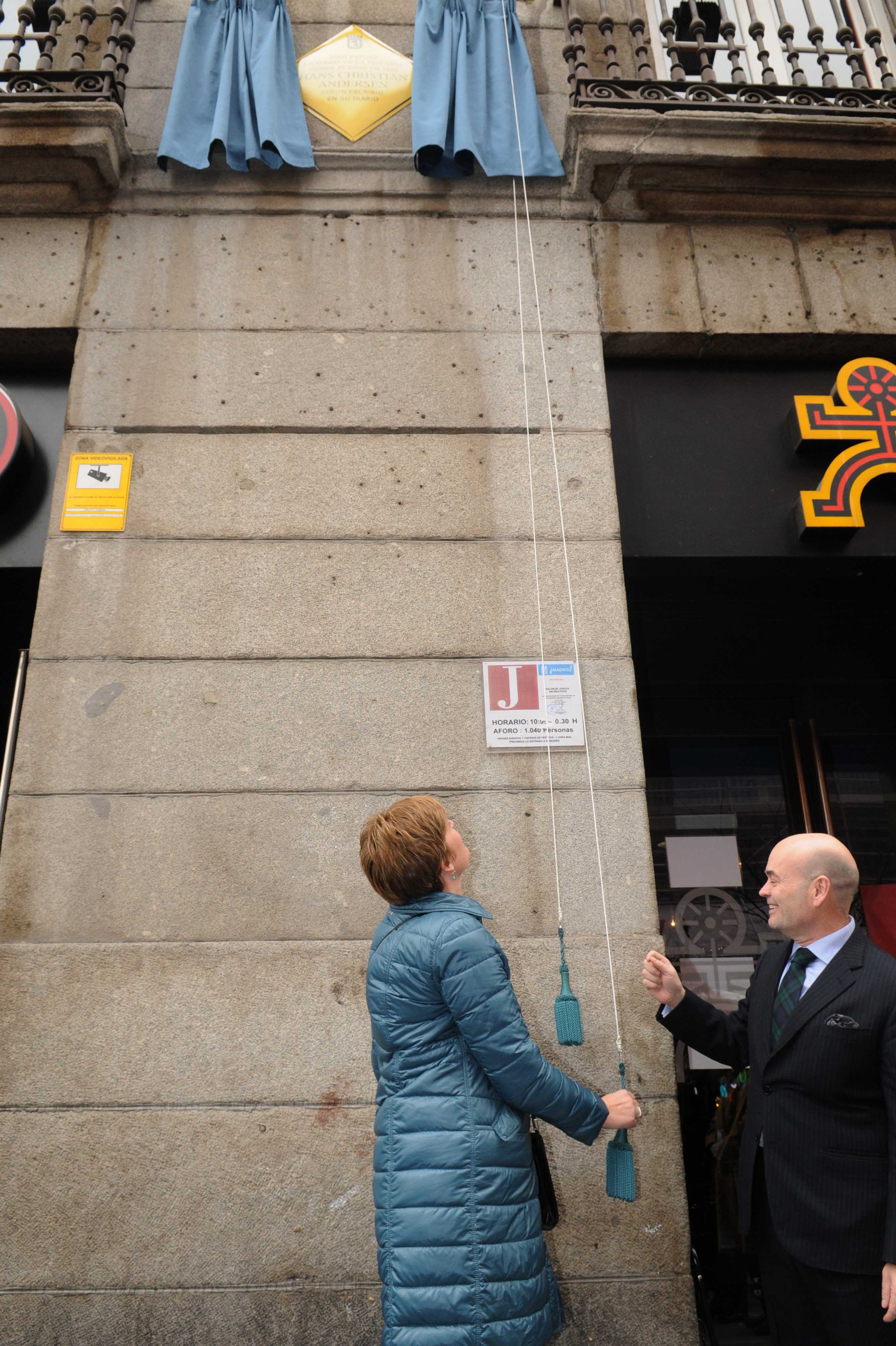 El delegado Villalonga descubre una placa conmemorativa en el lugar donde se alejó el escritor danés en su breve paso por Madrid