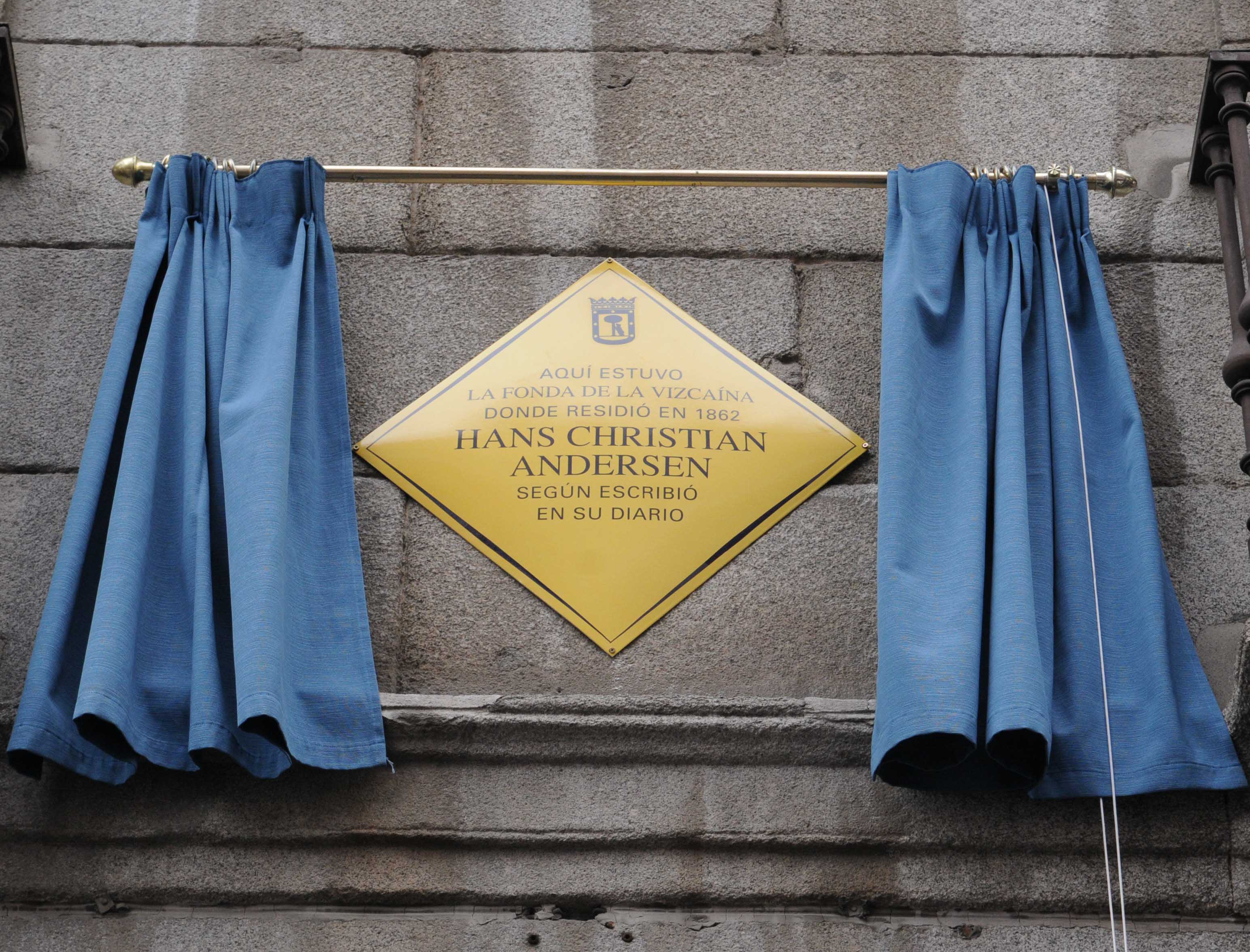 El delegado de las Artes, Fernando Villalonga, ha inaugurado este mediodía una placa en memoria del escritor y poeta danés Hans Christian Andersen. El escritor, conocido por sus famosos cuentos para niños, entre los que se encuentran títulos tan populares como “El patito feo”, “La sirenita” o “El soldadito de plomo”, realizó un viaje por España en 1862, visitando Granada, Alicante y Madrid. En la capital madrileña se alojó, según publicó en su diario, en la ya desaparecida Fonda de la Vizcaína, fundada en 1846. El Ayuntamiento de Madrid ha querido rendir un homenaje al conocido como el “Nobel de la literatura infantil” descubriendo una placa precisamente en el lugar donde estuvo dicha fonda en el siglo XIX, en la calle Mayor con la Puerta del Sol./