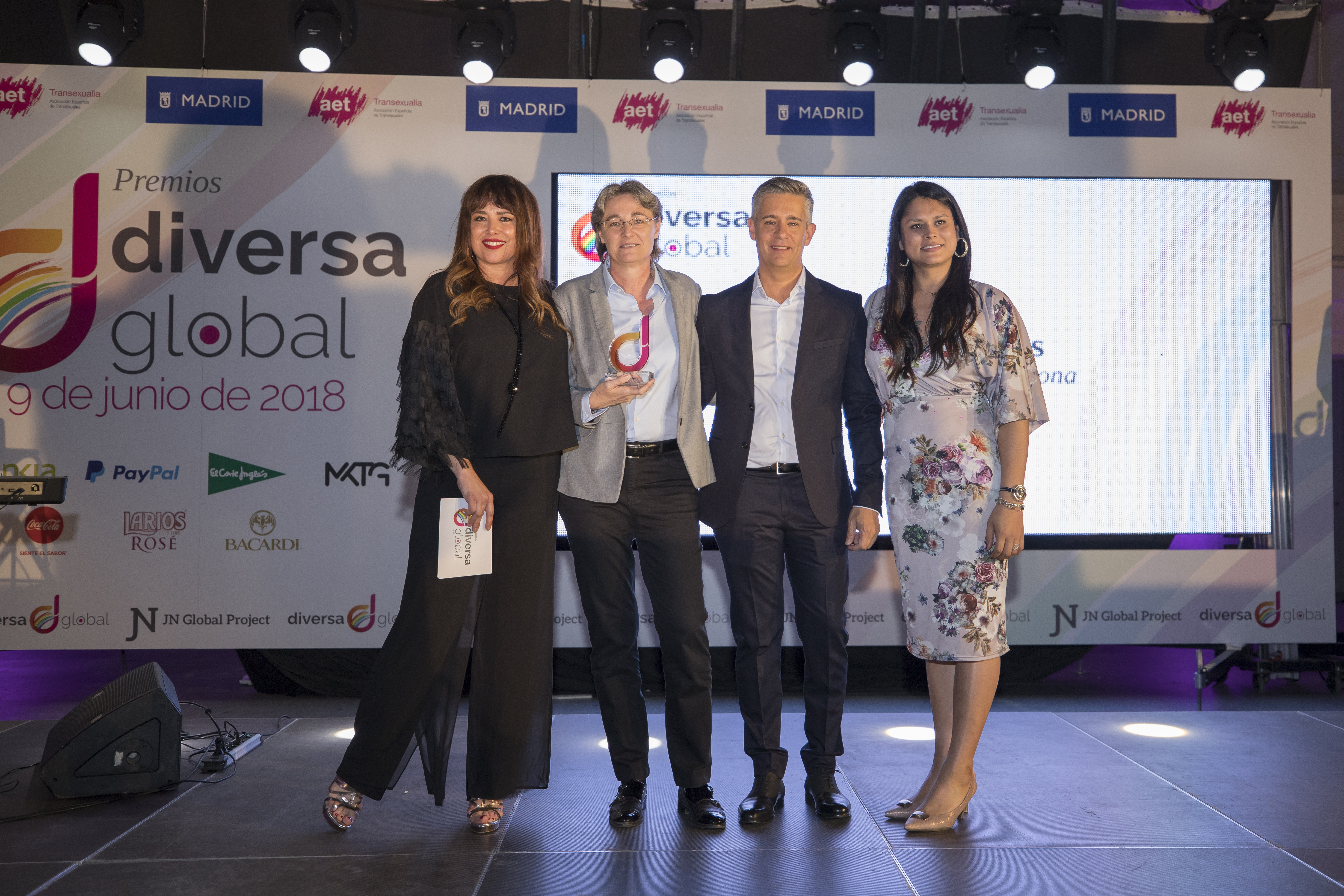 La primera teniente de alcalde y delegada del Área de Equidad, Derechos Sociales y Empleo, Marta Higueras, recogió ayer por la noche, el premio a la persona del año otorgado por la asociación Diversa Global en una cena benéfica celebrada en la galería del Palacio de Cristal de Cibeles. En la tercera cena benéfica de esta asociación también fueron concedidos otros trece premios a instituciones, empresas y personas que han trabajado, ejercido y fomentado la diversidad en todos los aspectos.