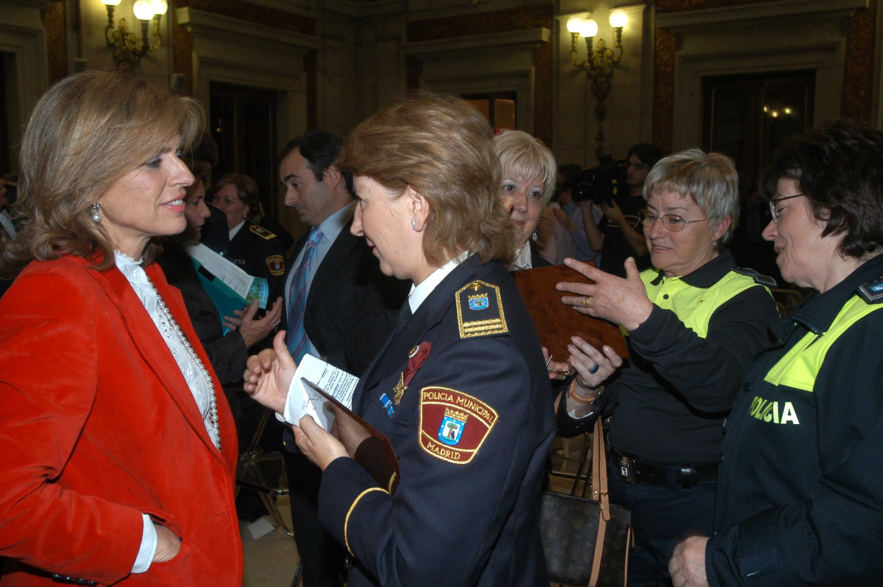 La teniente de alcalde y concejala de Servicios a la Ciudadanía, Ana Botella, ha presidido esta mañana el homenaje del Ayuntamiento de Madrid a las Mujeres Policías en la persona de la oficial Jerónima Gema Peña García, primera mujer que se jubila de las quince mujeres que se incorporaron al Cuerpo de Policía Municipal de Madrid en la promoción de 1971. “Merecéis especial reconocimiento aquellas mujeres que habéis sido pioneras en campos en los que la mujer no tenía ninguna presencia”, ha declarado Botella. En la actualidad hay 832 mujeres en el Cuerpo, el 12,3% del total de agente. En las en las categorías más altas, esta cifra sube hasta el 25%.