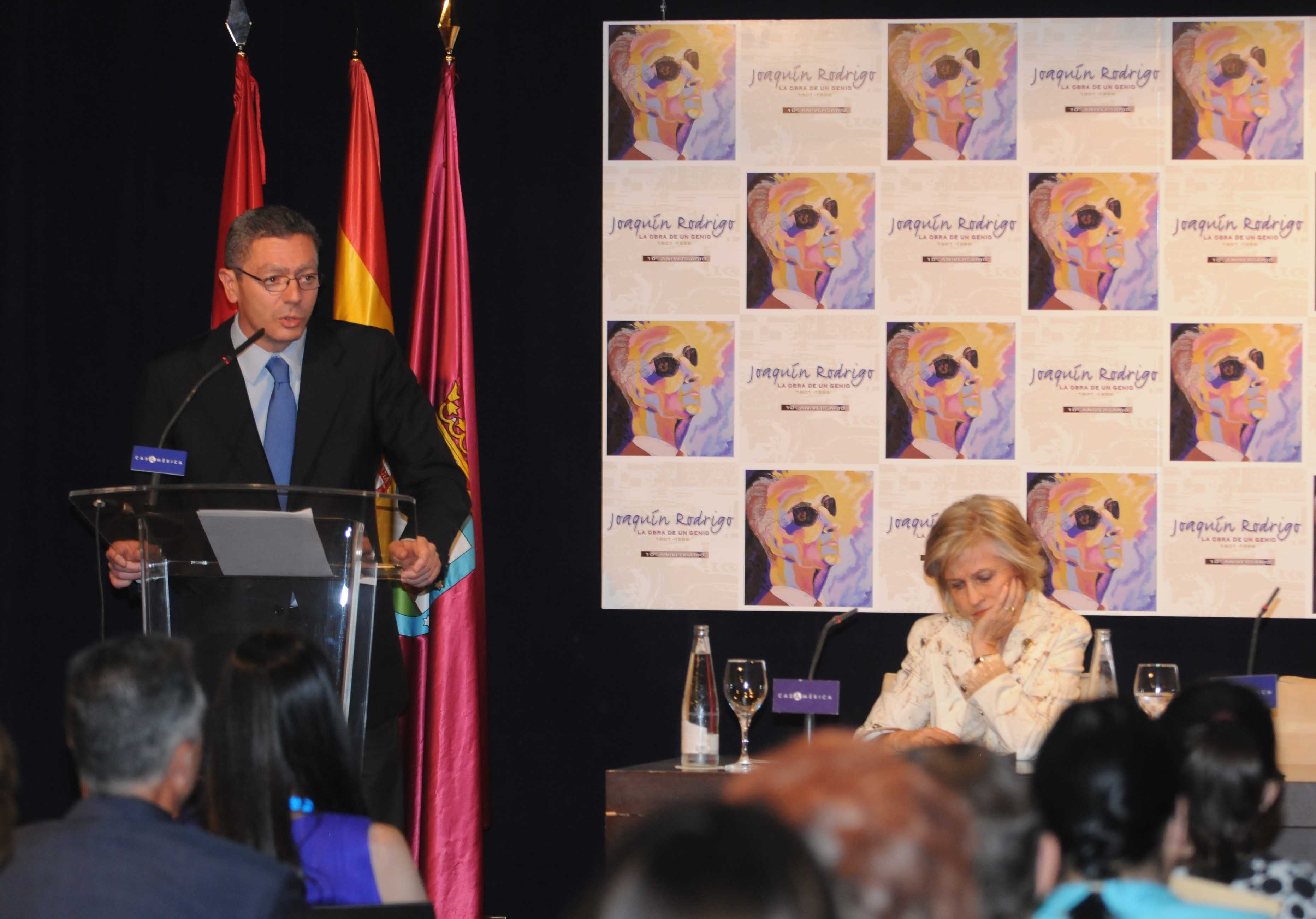 "Sin embargo, que nadie piense que este idilio fue cosa hecha", afirmó Gallardón, quien ha recordado las dificultades a las que se enfrentó Joaquín Rodrigo como un entorno familiar ajeno a la música o una ceguera que limitaba las oportunidades de aprendizaje. "Si se consolidó fue gracias al constante afán de superación y a la irrenunciable búsqueda de la excelencia".