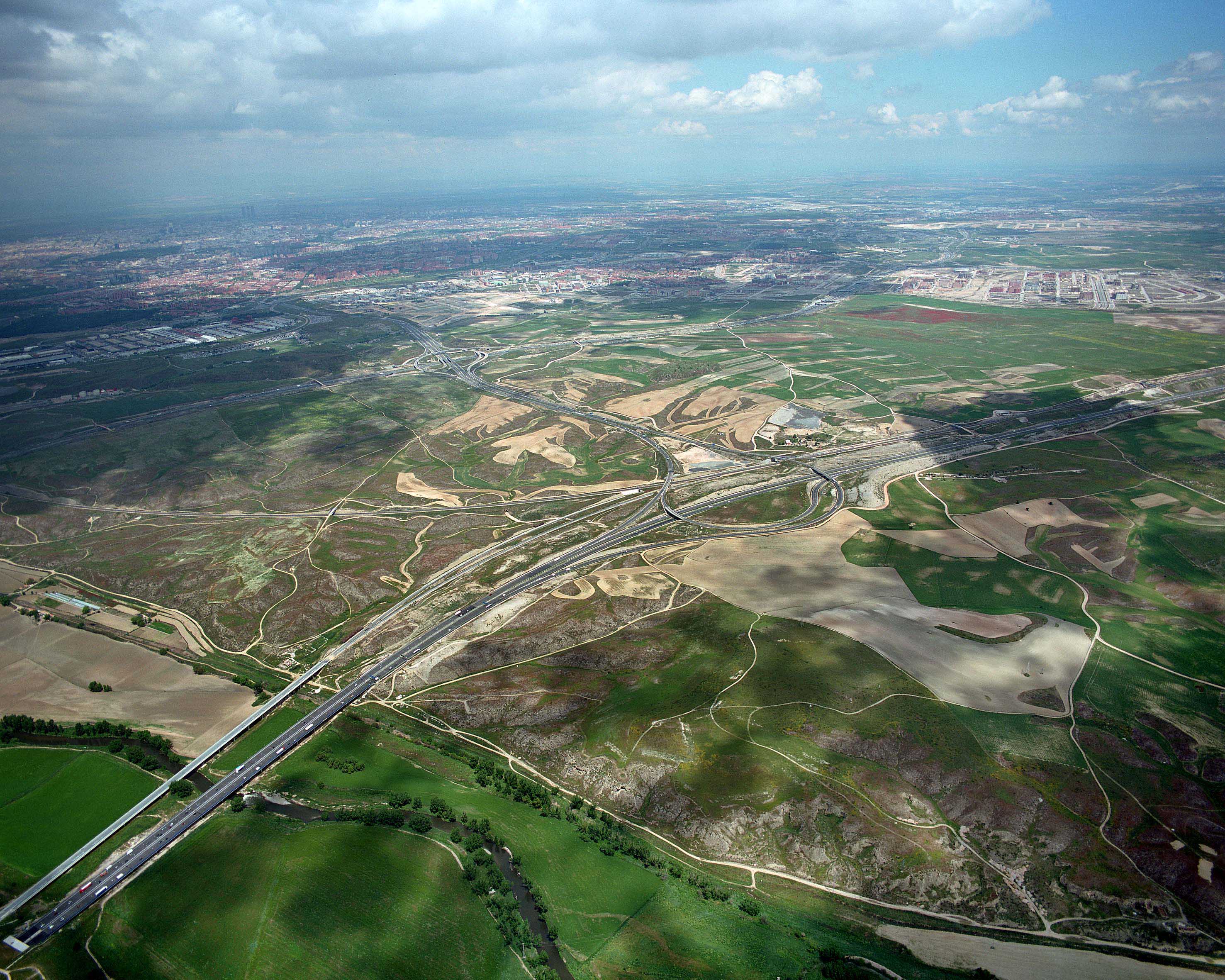 Vista aérea del lugar en donde se asentará el futuro barrio de Valdecarros, en el distrito de Villa de Vallecas.