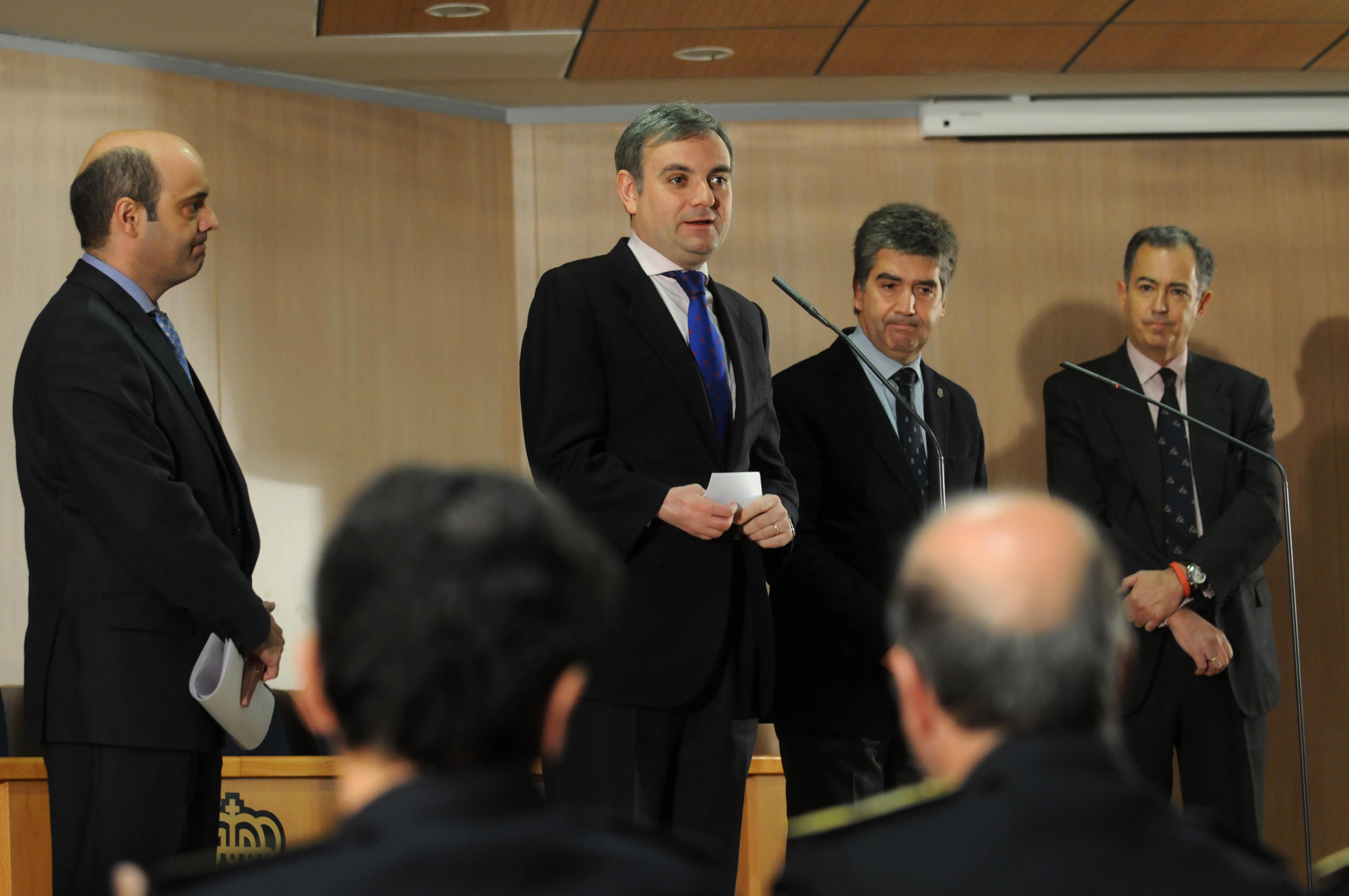 En las imágenes, el delegado de Seguridad y Emergencias, Enrique Núñez, junto al director general de la Policía Nacional, Ignacio Cosidó, y el consejero de Economía y Hacienda de la Comunidad de Madrid, Enrique Osorio.