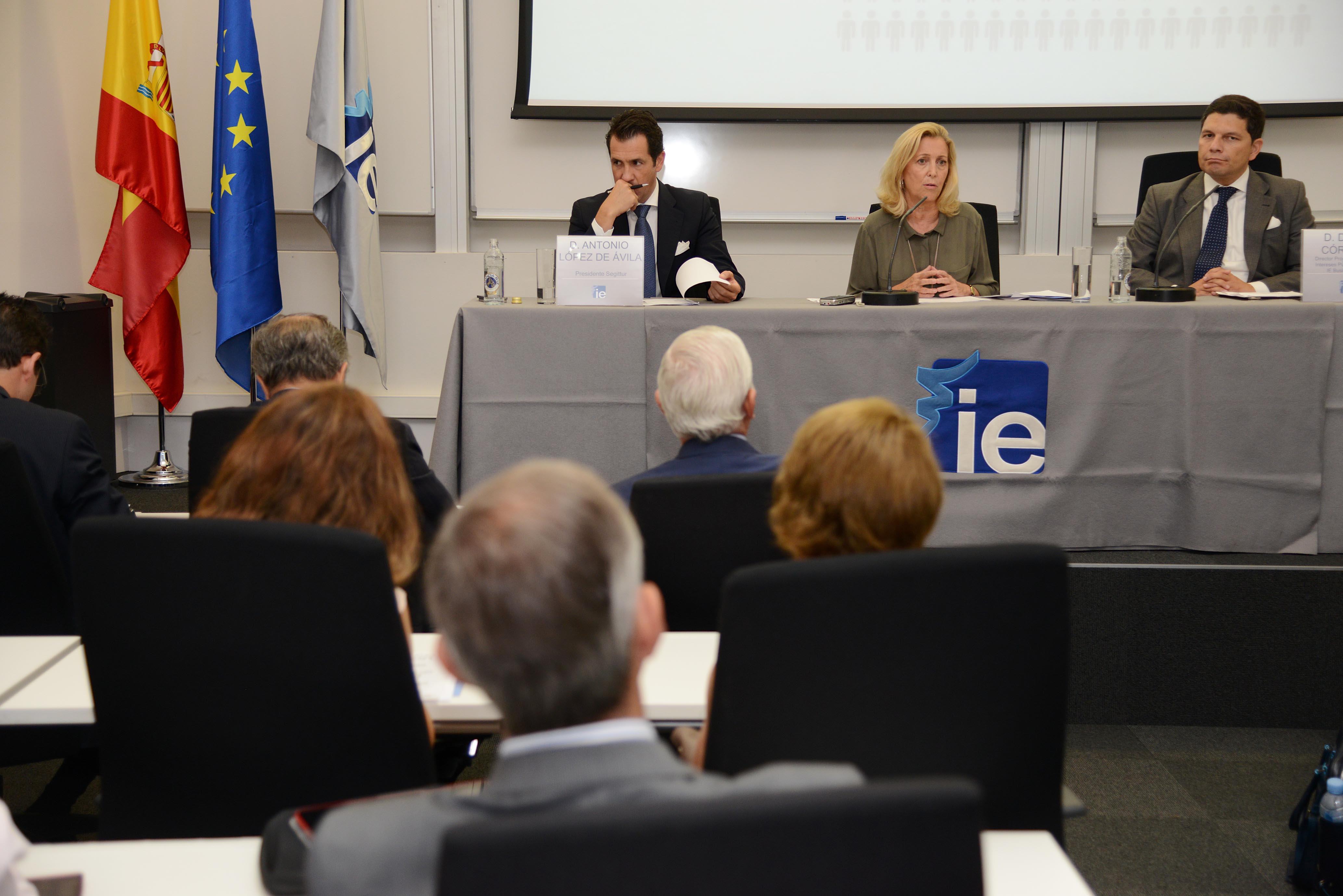 La primera teniente de alcalde y delegada de Hacienda, Economía y Administración Pública, Concepción Dancausa, ha intervenido hoy en la jornada Innovación, Disrupción y Economía organizada por el IE Business School. Dancausa ha detallado cómo el Ayuntamiento de Madrid, “una administración innovadora”, gestiona la ciudad utilizando las nuevas tecnologías. Las imágenes corresponden a distintos momentos del acto./