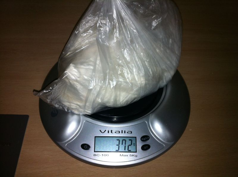 Tras obtener la correspondiente autorización, previa solicitud a la Autoridad judicial, posteriormente se realizó la entrada y registro del domicilio del detenido, localizándose 380 gramos de cocaína, 1 bascula de precisión, numerosas bolsitas de plástico para la preparación de las dosis y dos pasaportes.