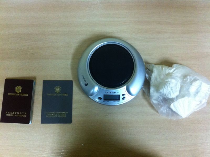 Una vez realizadas las labores de identificación de esta persona, quien resulto ser D.F.P.C. de 39 años de edad y de nacionalidad colombiana, los agentes practicaron un registro preventivo encontrando oculto en sus genitales un envoltorio de plástico que contenía 102 gramos de una sustancia que podría ser cocaína. Por este motivo se procedió a su detención como presunto autor de delito contra la salud pública.