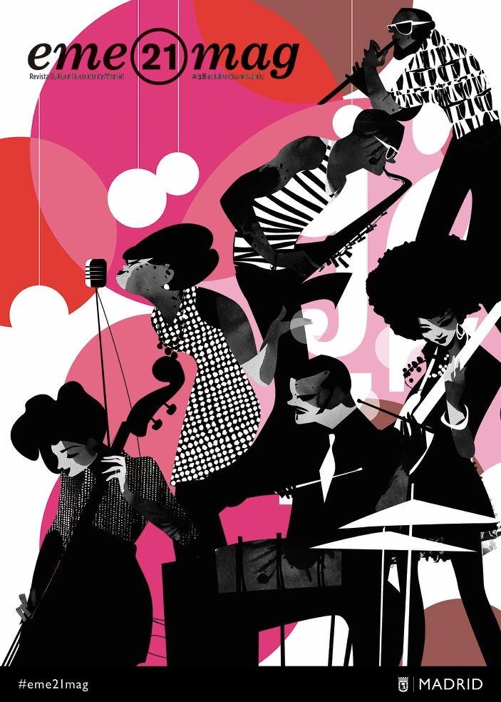 Por otro lado, la portada de octubre de eme21magazine, la revista ilustrada del Área de Cultura, Turismo y Deporte del Ayuntamiento, está dedicada a JAZZMADRID. Jorge Arévalo recrea la magia de esta cita musical que es una de las más esperadas del año.