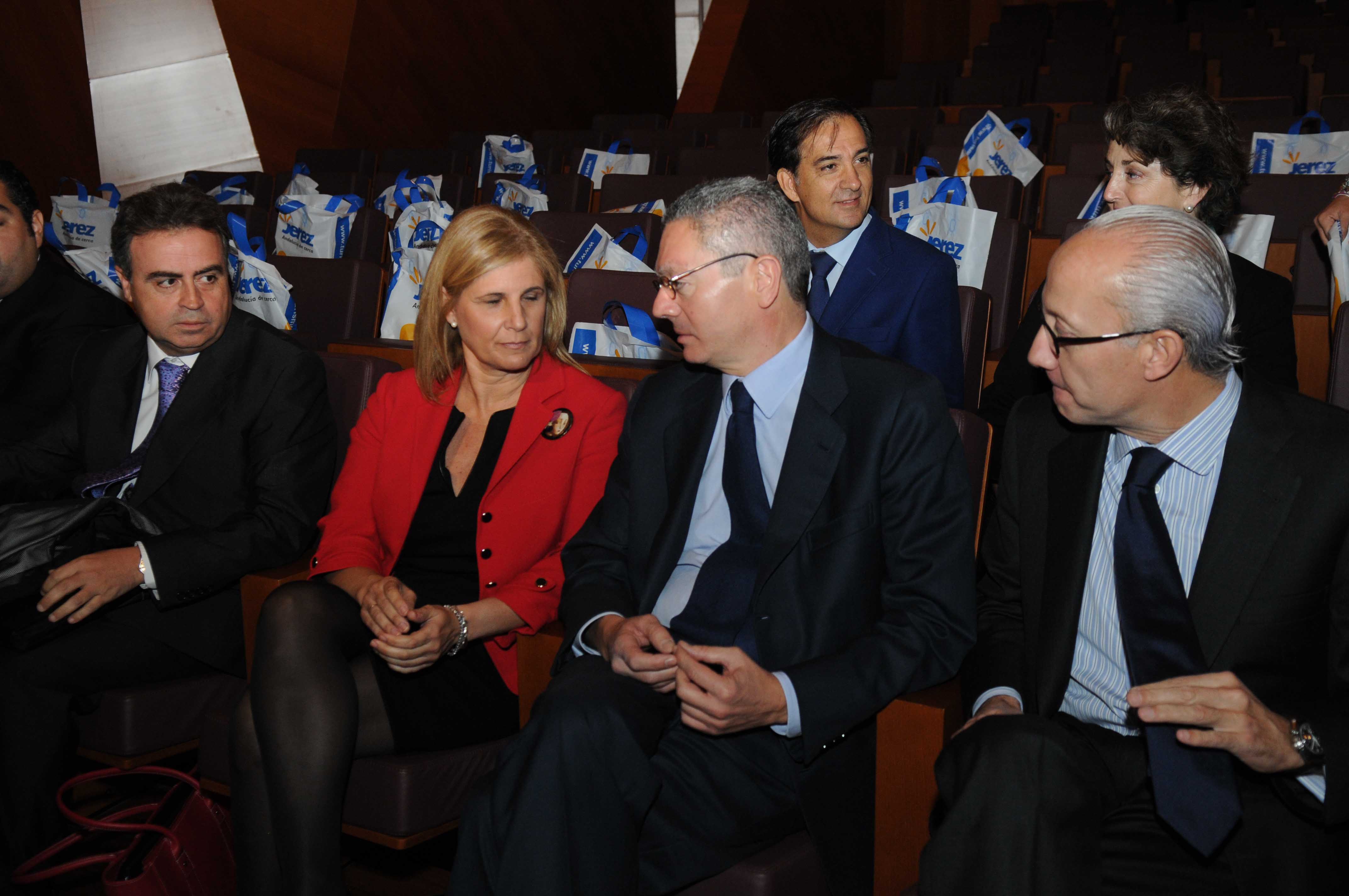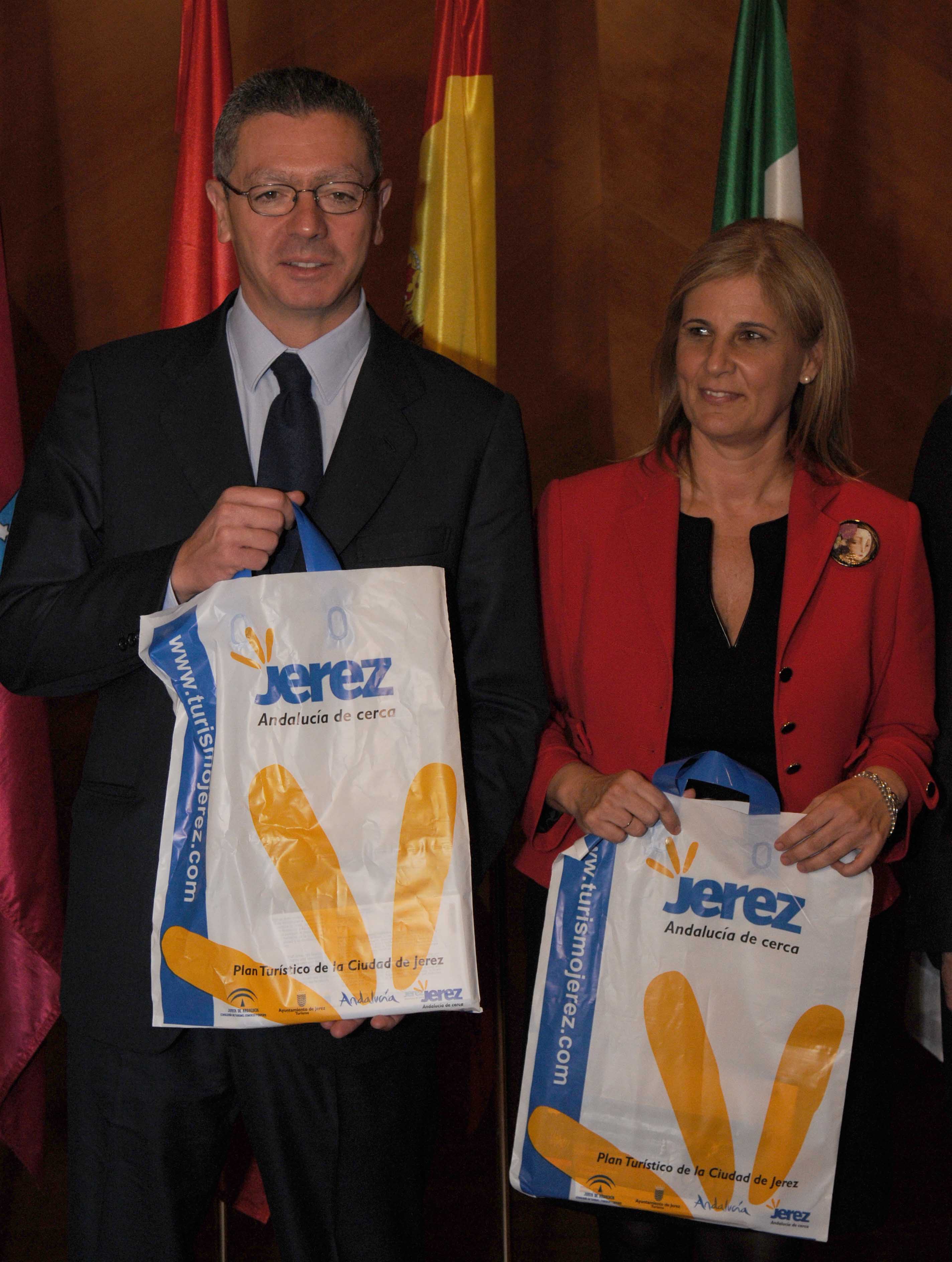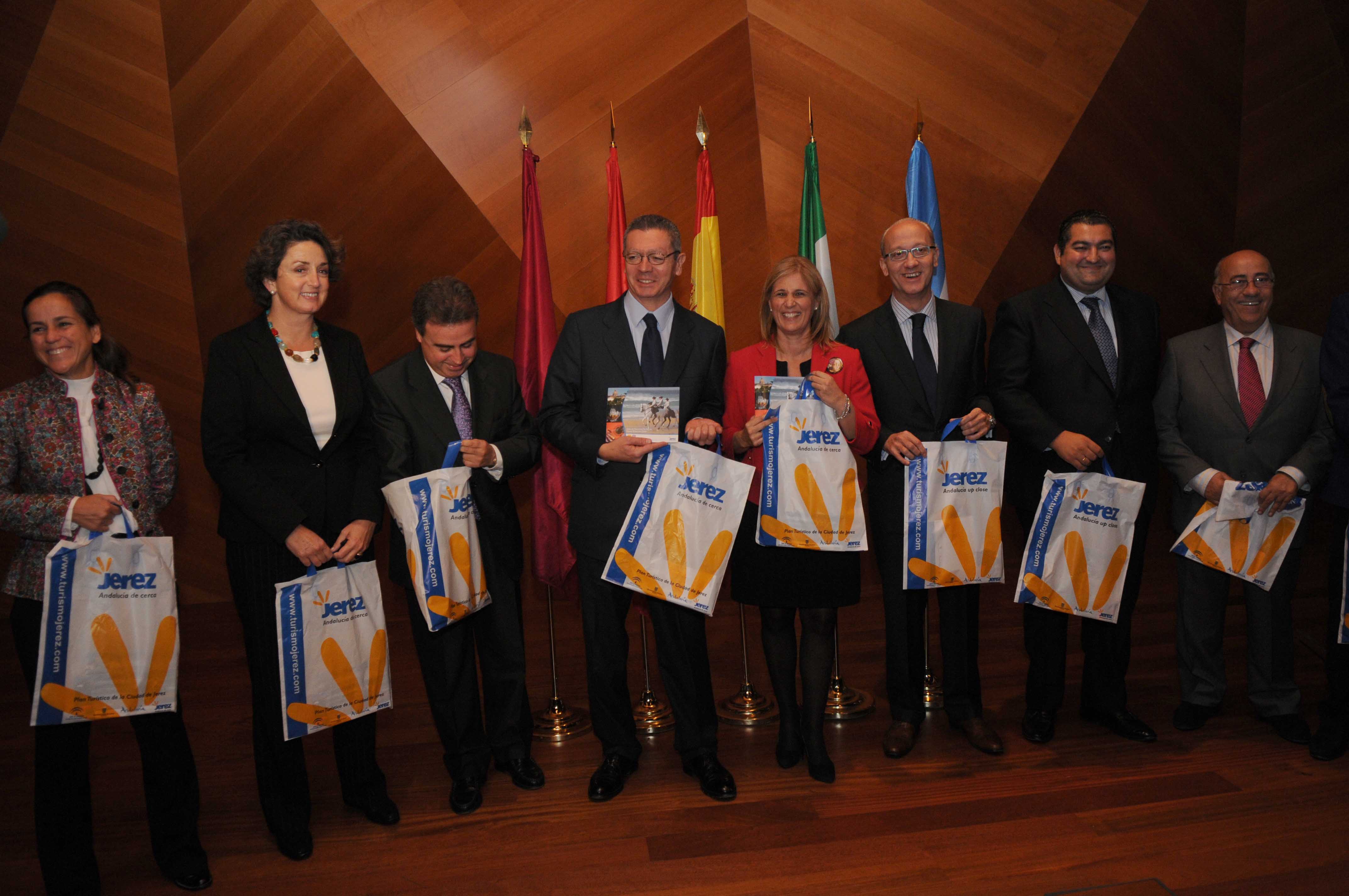 Imágenes de la presentación de la oferta cultural y turística de Jerez de la Frontera en el espacio CentroCentro del Palacio de Cibeles. El alcalde, Alberto Ruiz-Gallardón, y su homóloga de la ciudad andaluza, María José García, han detallado la cartera de propuestas que el ayuntamiento jerezano desarrollará en 2012.