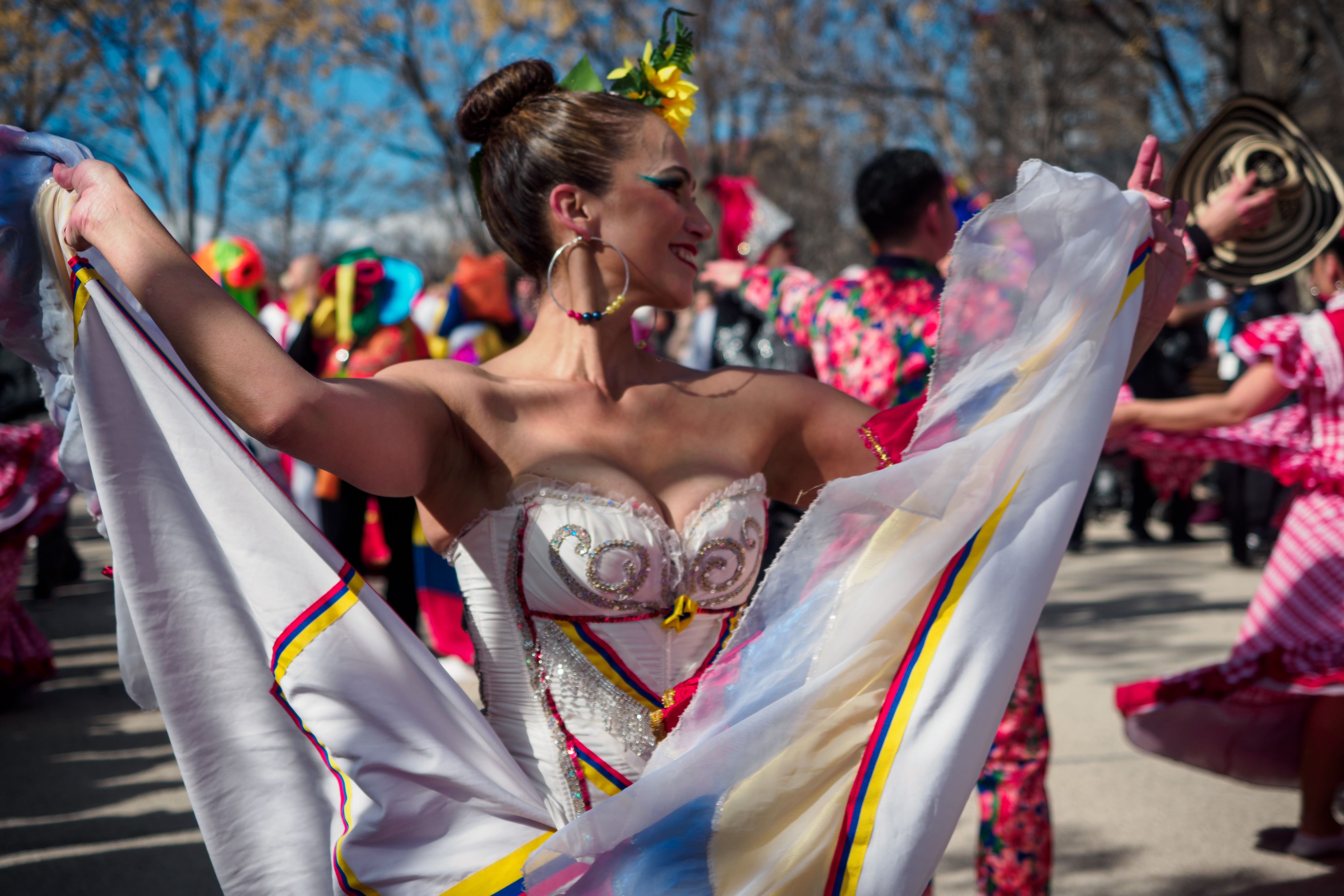 - Durante el desfile, asociaciones culturales de Bolivia, Ecuador, Chile, Colombia o Uruguay han desplegado su folclore con baile, música y trajes tradicionales