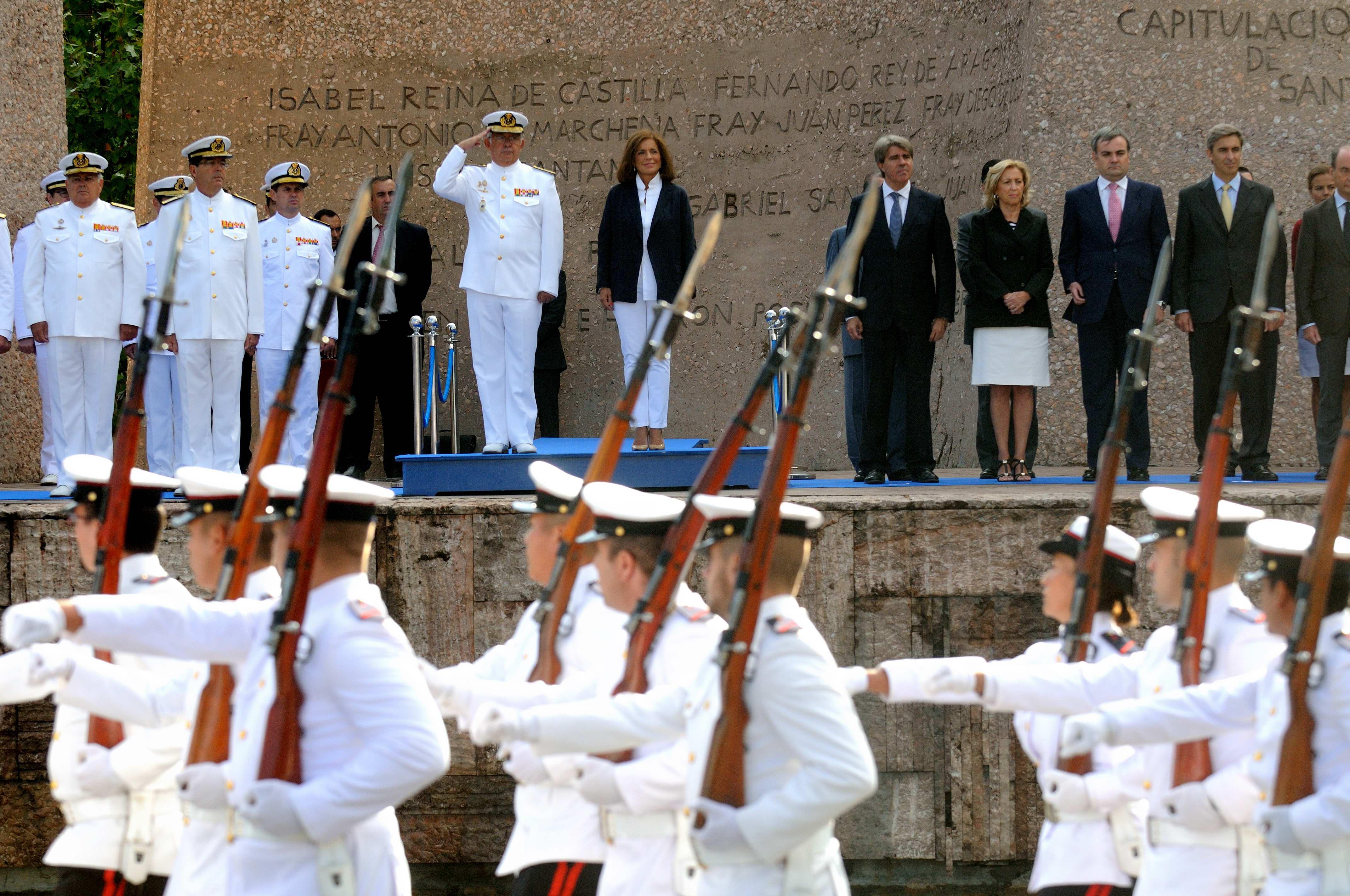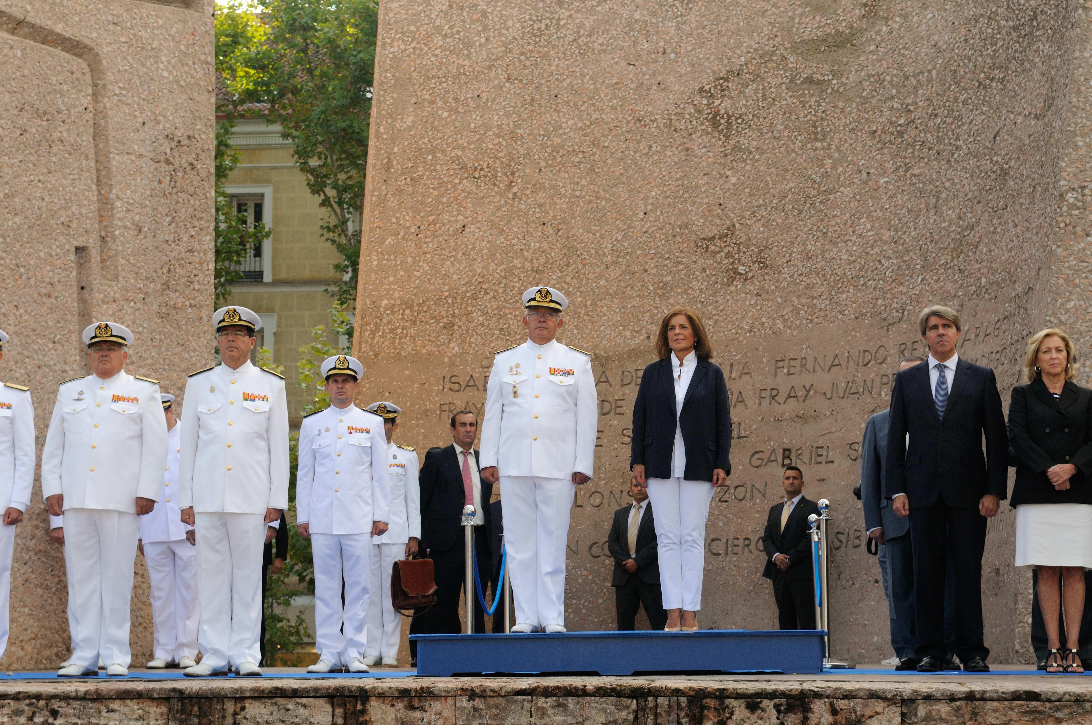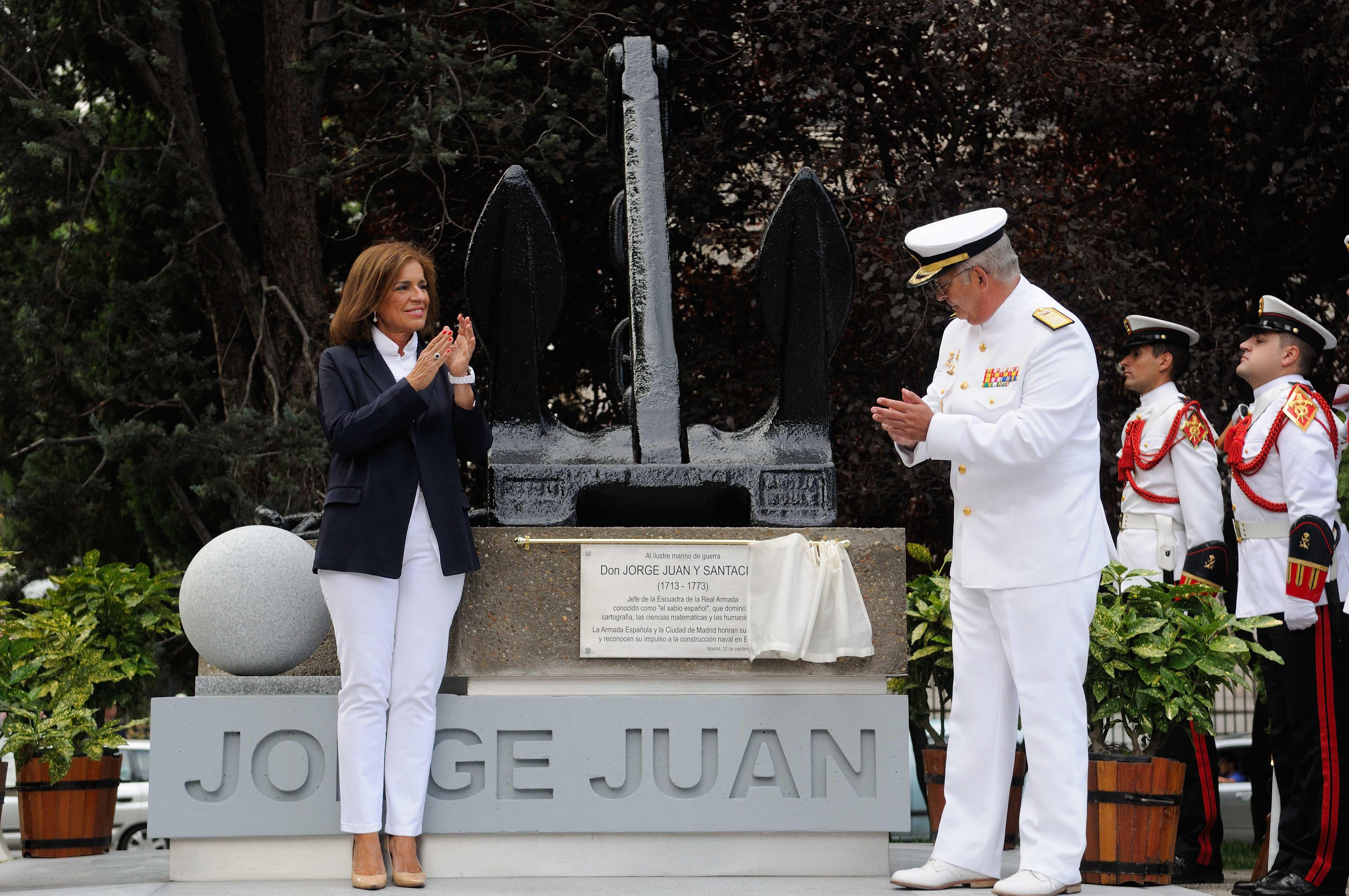 La alcaldesa Ana Botella asistió al izado de la Bandera Nacional y a la inauguración del monumento al marino Jorge Juan