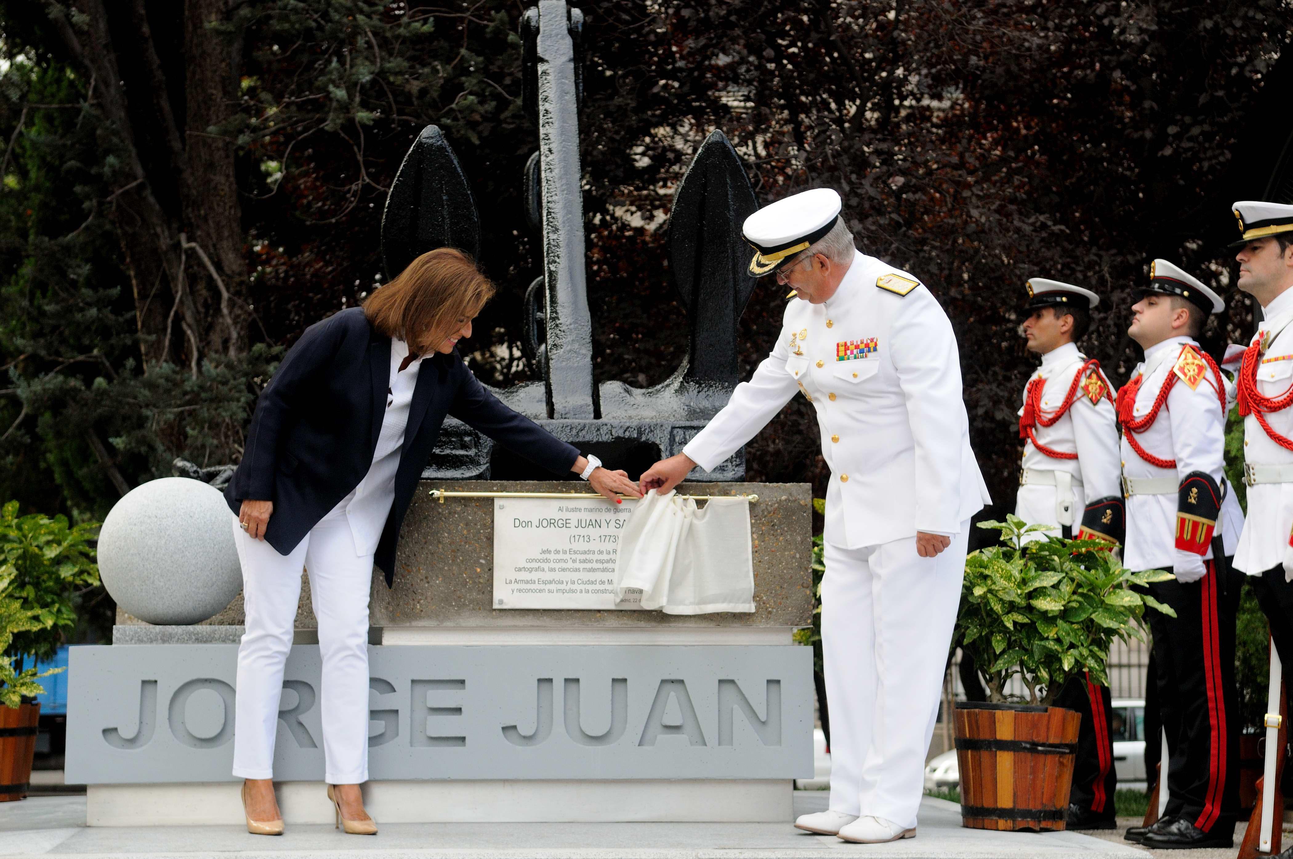 El recuerdo del almirante alicantino Jorge Juan y Santacilia traspasa desde hoy las páginas del callejero. Ana Botella, alcaldesa de Madrid, ha inaugurado el monumento al que fuera conocido con el sobrenombre de “el sabio español”, en los Jardines del Descubrimiento, coincidiendo con la celebración de la Semana Naval. Ha sido una iniciativa conjunta entre el Cuartel General de la Armada y el Ayuntamiento, que demuestra, en palabras de Botella, “que somos muchos en Madrid, ciudadanos, instituciones, entidades, para quienes el recuerdo es una forma de mirar al futuro. No podemos ni debemos empolvar la memoria”, aseguró al tiempo que reconocía “la nobleza” de la ciudad que le permite “reconocer y agradecer la labor de quienes, vengan de donde vengan, han contribuido y contribuyen a construir el país que hoy tenemos. Eso le da fuerza para encarar el mañana, sabedora de que la historia es siempre una suma de esfuerzos, aportaciones, iniciativas. Y capaz de reconocerlas sin reservas”.Un ancla tipo hall, de 1.200 kilos de peso, realizada en acero fundido, y una cadena de seis metros también de acero, sobre una base escalonada de hormigón visto “engarza desde hoy al marino alicantino con la memoria viva de la ciudad en la que murió”, ilustró la alcaldesa. /