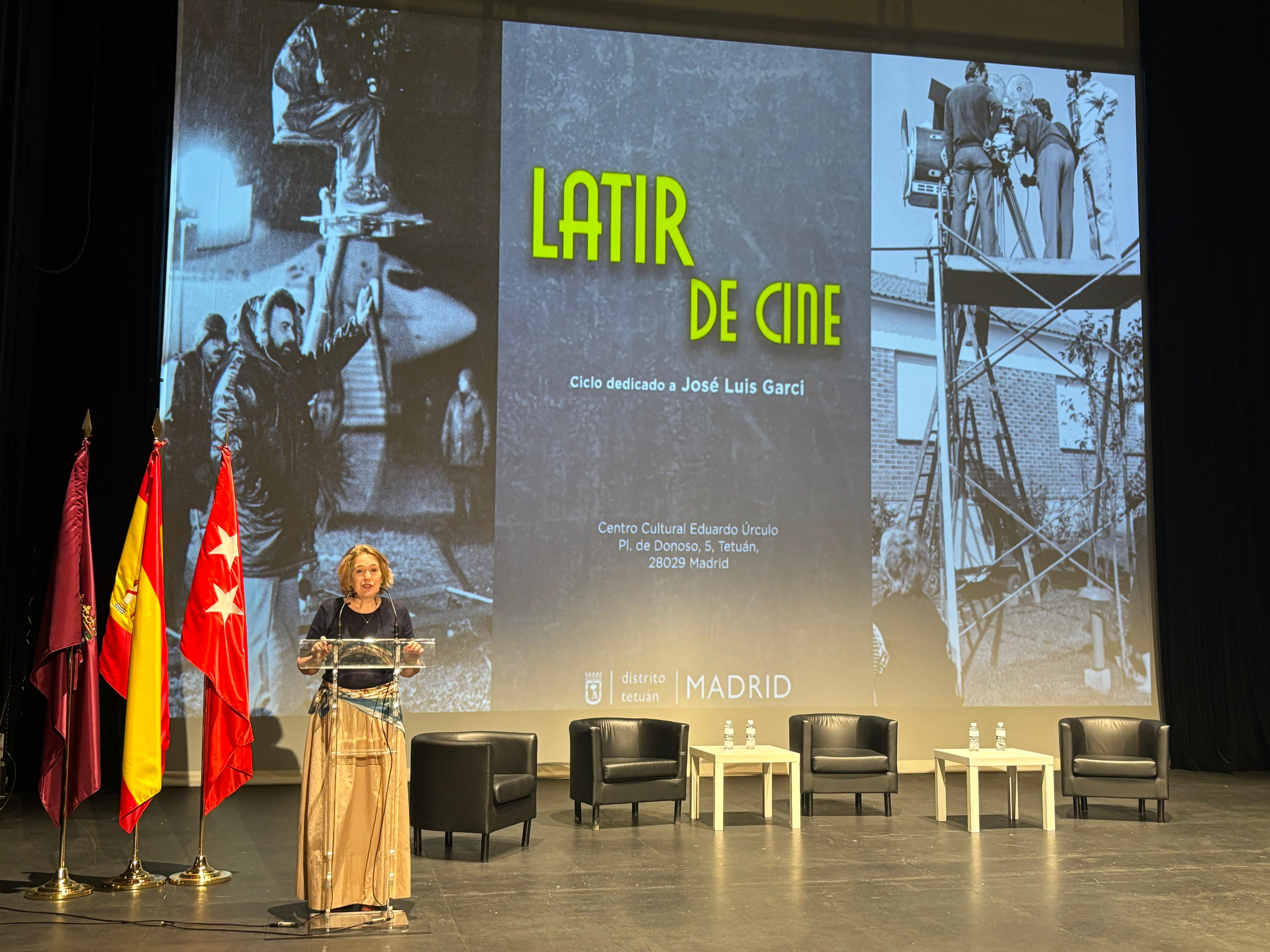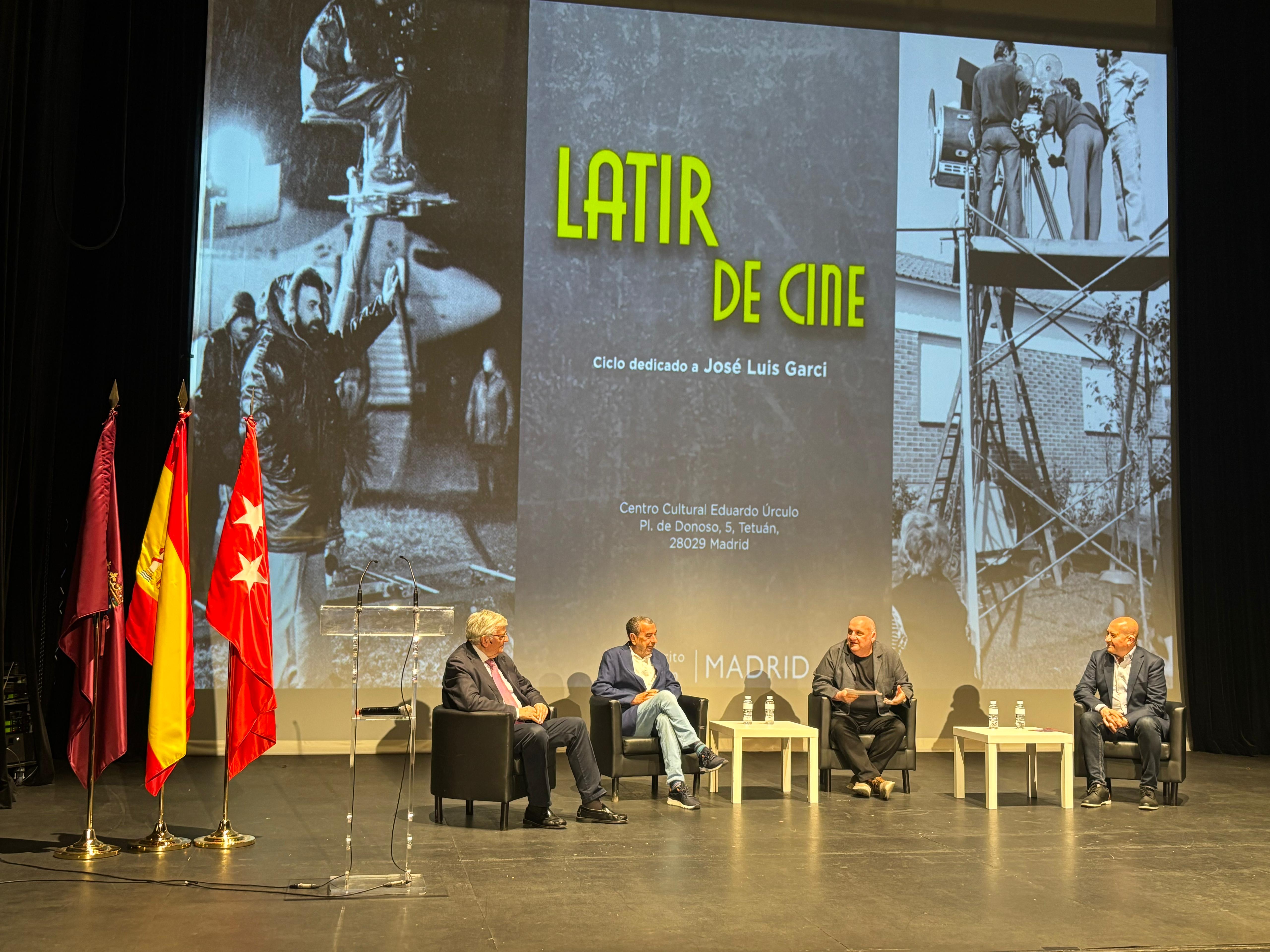 La Junta Municipal de Tetuán ha clausurado esta tarde ‘Latir de cine’, programación dedicada al cineasta madrileño José Luis Garci en el Centro Cultural Eduardo Úrculo. La delegada de Cultura, Turismo y Deporte, Marta Rivera de la Cruz, y la concejala del distrito, Paula Gómez-Angulo, han participado en esta última jornada, que ha contado con el propio José Luis Garci en el coloquio posterior a la proyección de la película Volver a empezar, junto a los periodistas y expertos en cine Juan Luis Álvarez, Moisés Rodríguez y Eduardo Torres-Dulce.