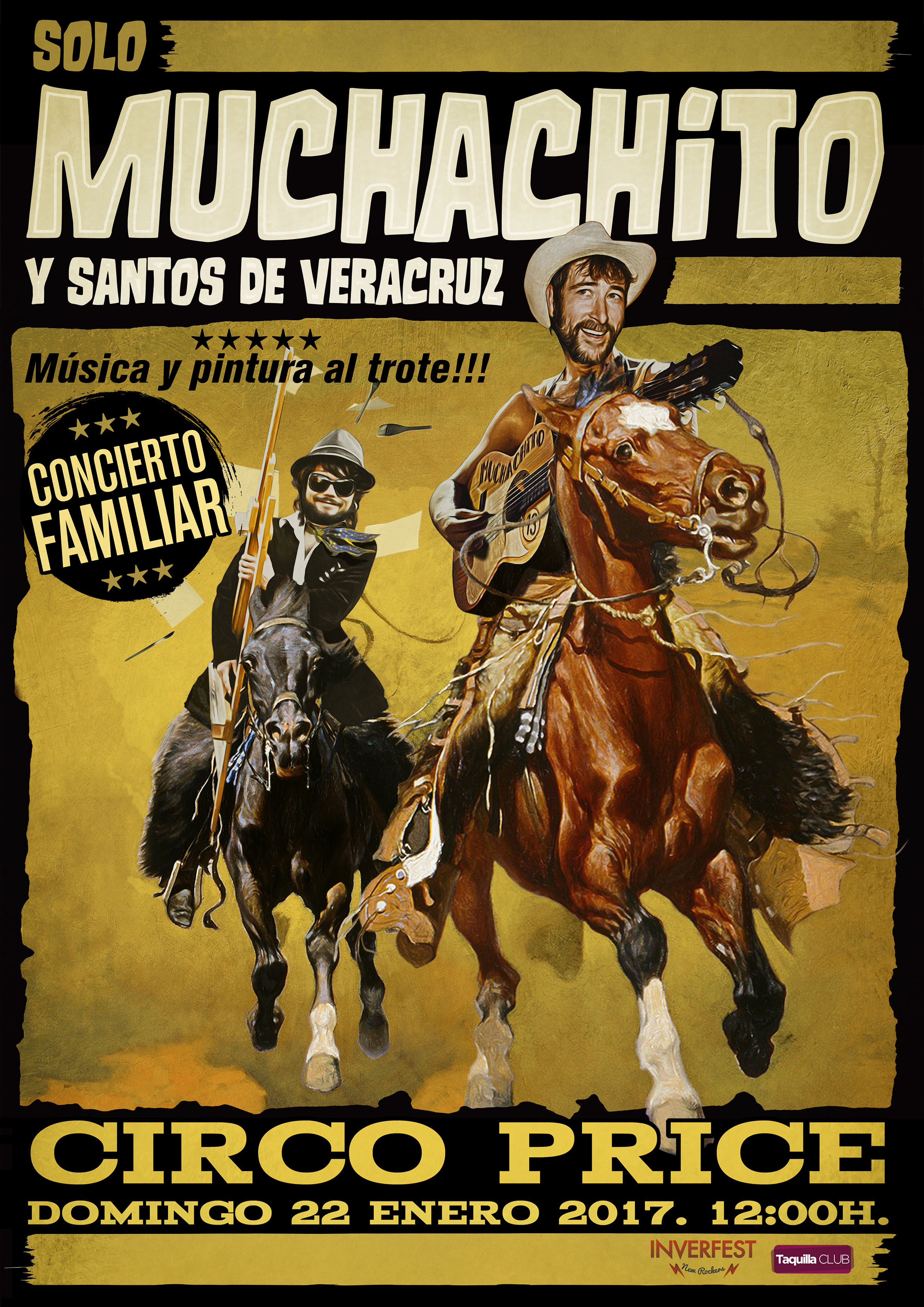 El domingo 22 de enero será Muchachito el encargado de hacer vibrar a rockers y a new rockers, acompañado de la pintura en vivo de Santos de Veracruz. El artista catalán actúa por primera vez en el Circo Price en un concierto familiar, en sesión matinal, a ritmo de rumbas y otras músicas. Pensado para el disfrute de todos los públicos Muchachito actuará con su guitarra de palo y su bombo-colchón a los pies. Le acompañará con sus pinceles Santos de Veracruz dibujando al ritmo sobre varios lienzos.