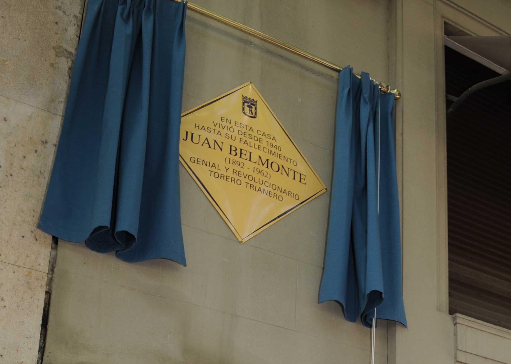 La placa, incluida dentro del Plan Memoria de Madrid, se instala justo el día en el que se cumple un siglo de la alternativa en Madrid de un diestro que brindó a los aficionados tardes memorables y está considerado como uno de los "más grandes y legendarios toreros de la Historia". "Belmonte -prosiguió Botella- marcó un antes y un después en el mundo del toreo. Para los madrileños es una alegría inmensa recordarle hoy como uno de nuestros más ilustres vecinos".