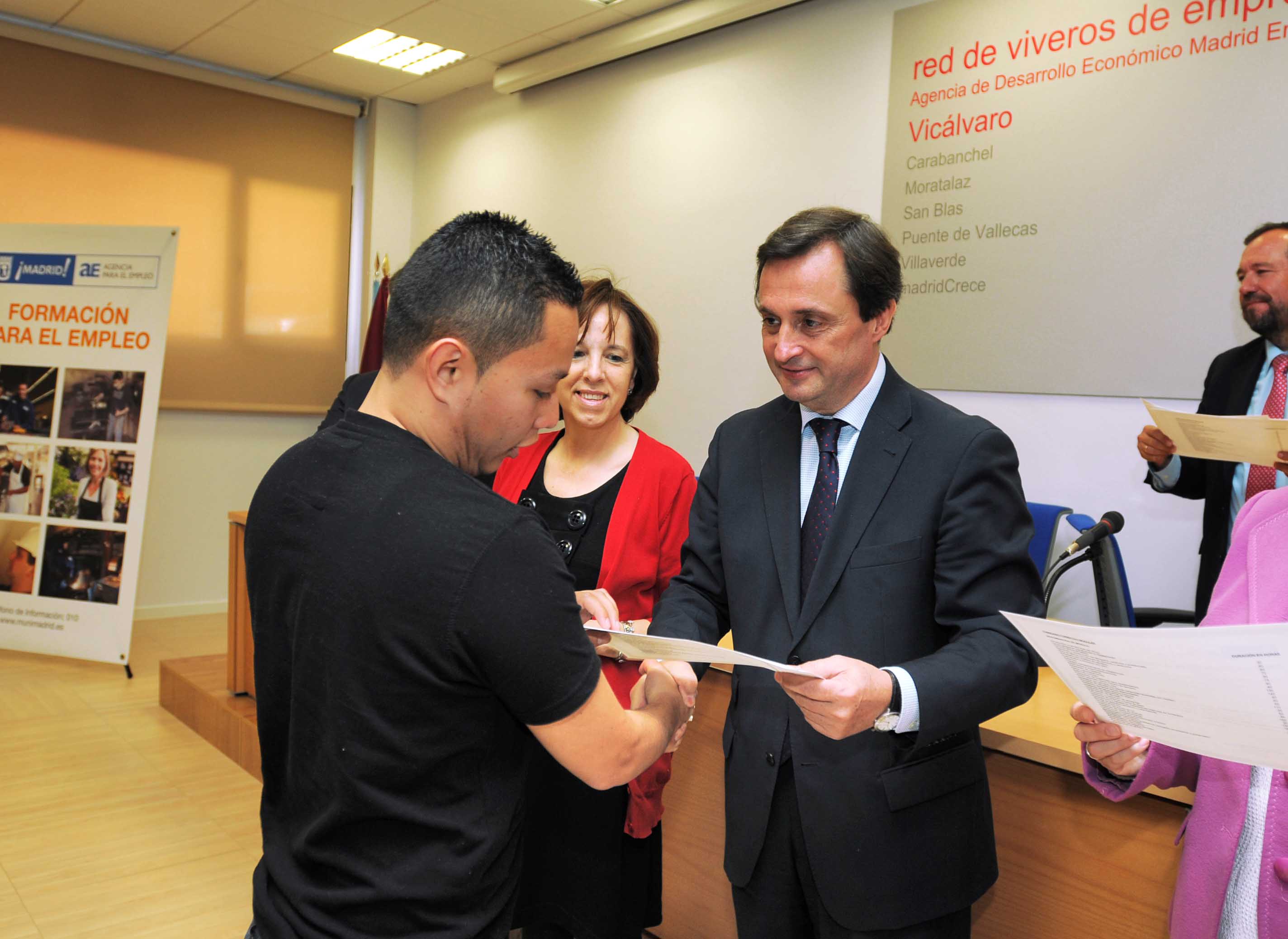 El coordinador general de Empleo, Desarrollo Empresarial y Participación Ciudadana, Juan del Álamo, ha entregado esta mañana los diplomas de cinco Escuelas-Taller de la Agencia para el Empleo. El acto se ha celebrado en la Escuela-Taller Vivero de Vicálvaro, ubicada en la calle Villablanca, 85
