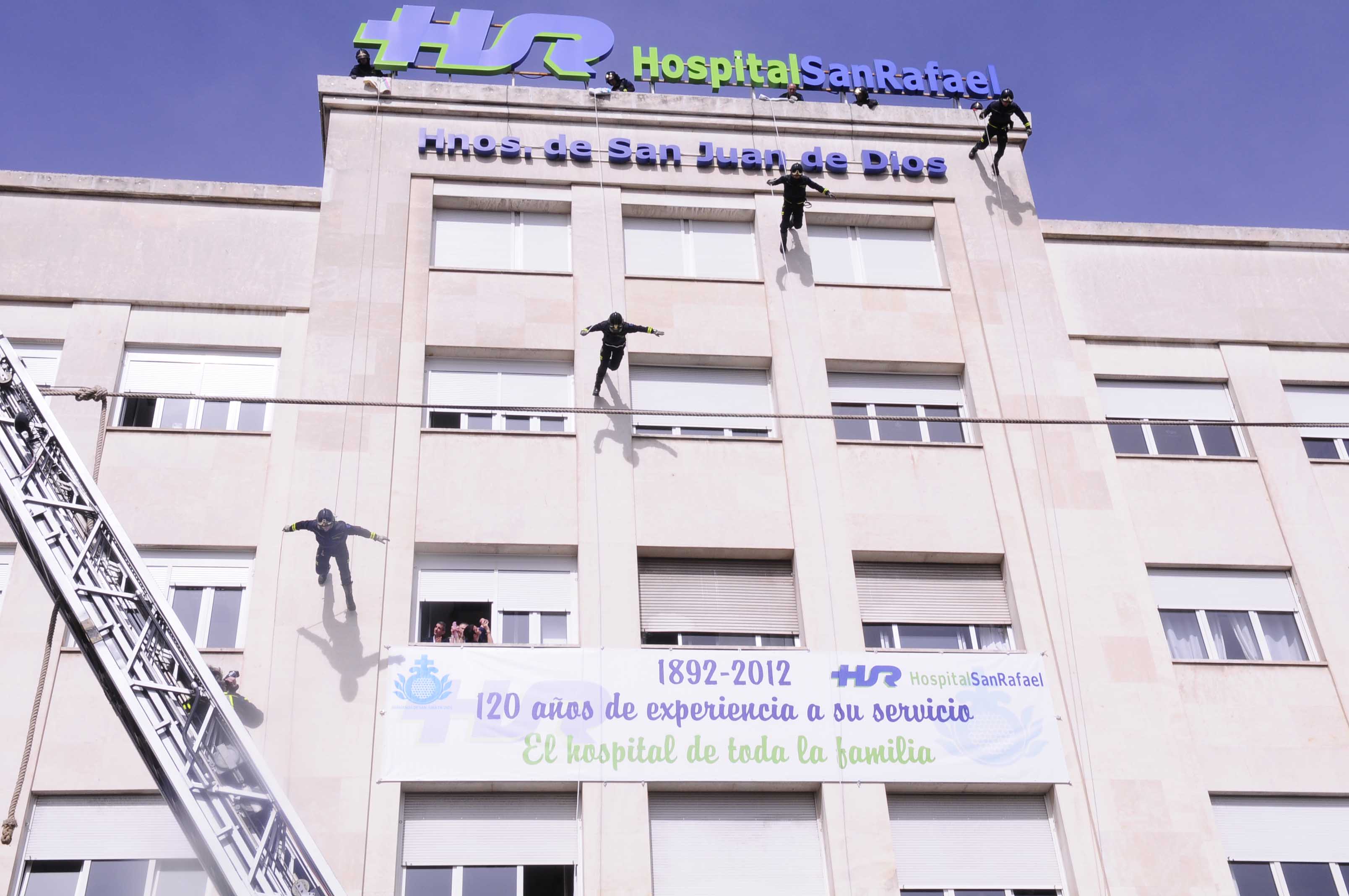 El delegado de Medio Ambiente, Movilidad y Seguridad, Antonio de Guindos, ha participado hoy en la tradicional entrega de juguetes a los niños ingresados en el Hospital de San Rafael, que realiza el Cuerpo de Bomberos del Ayuntamiento de Madrid. Esta visita al centro infantil de la Orden Hospitalaria de los Hermanos de San Juan de Dios forma parte desde hace muchos años de las actividades programadas por este Cuerpo Municipal con motivo de la celebración de su patrón. Los pequeños, además de divertirse con los juguetes, han podido disfrutar de la exhibición de habilidades que han realizado los bomberos descolgándose por la fachada del hospital y subiendo y bajando escaleras.