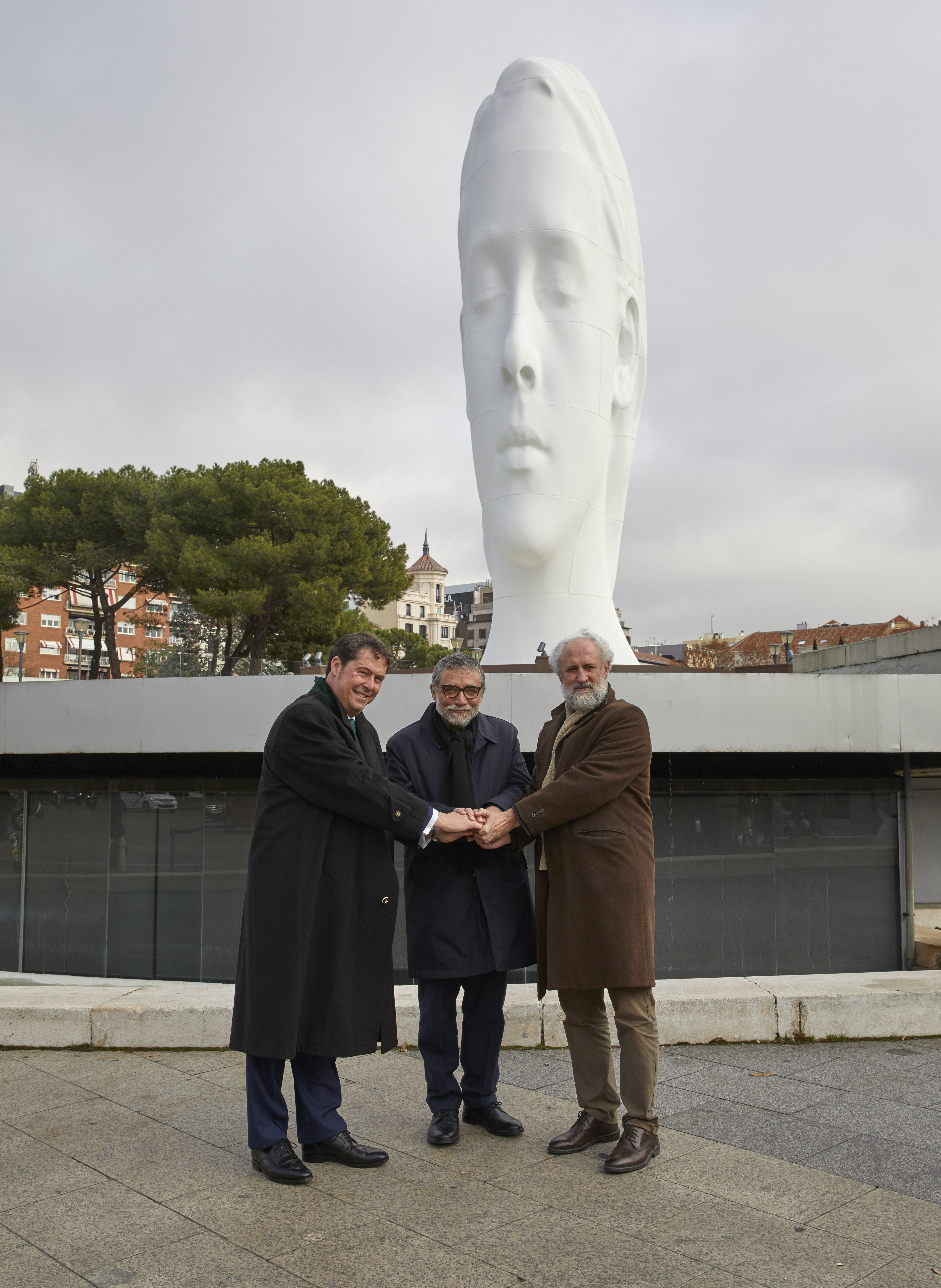 Realizada en resina de poliéster y polvo de mármol blanco, materializa un mecenazgo que hará posible que, por primera vez, Jaume Plensa –Premio Velázquez de las Artes en 2013– exponga una obra de estas características en España. La elección de este artista, de reconocida trayectoria internacional, pretende servir de impulso para promover el desarrollo de proyectos futuros.