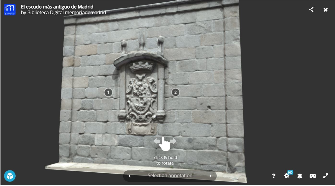 La sección, accesible desde el Gabinete de Humanidades Digitales de la Biblioteca Digital memoriademadrid, está disponible en www.escond.es/fotogrametria y en el perfil de la Biblioteca Digital en Sketchfab https://skfb.ly/oqBpZ